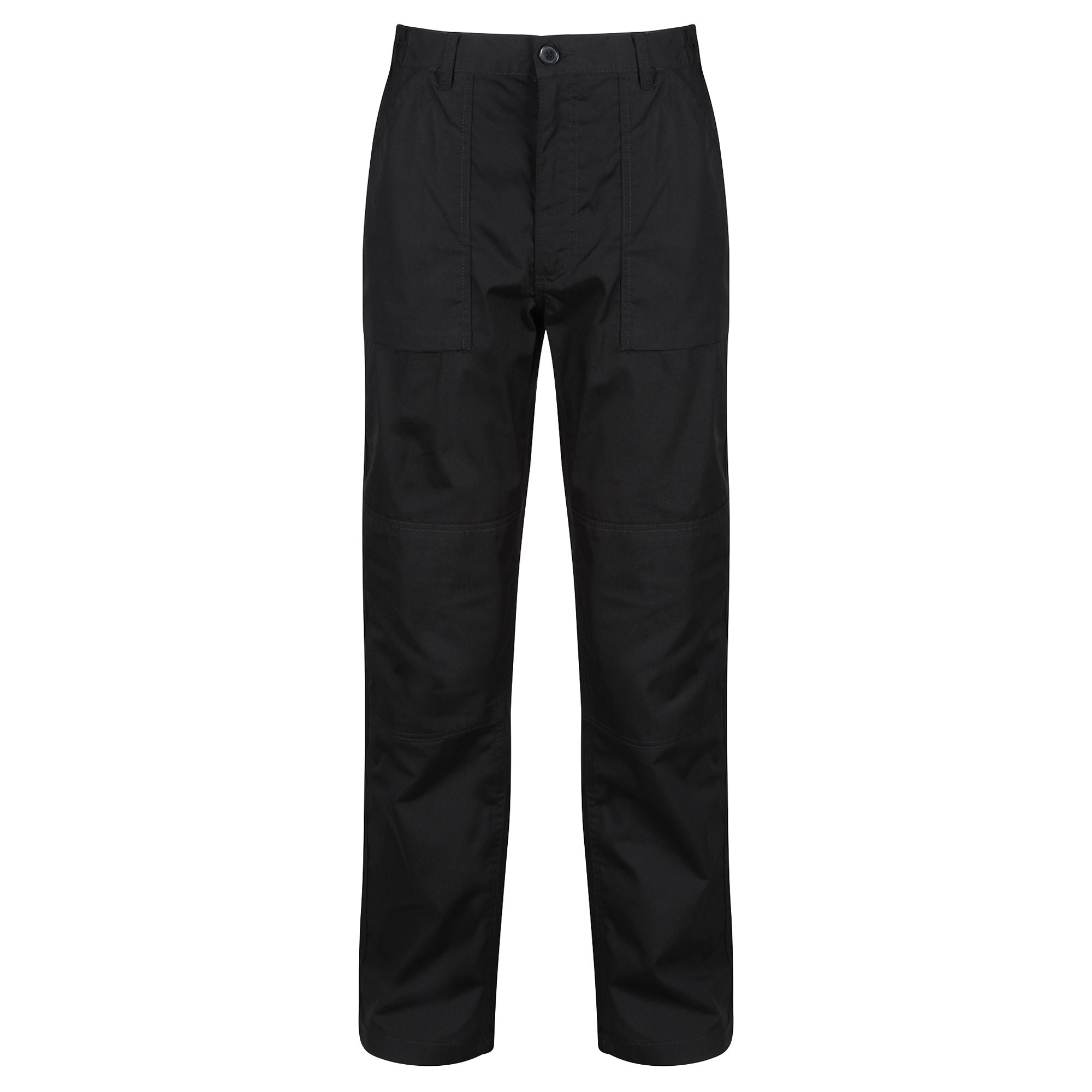 Taille partiallement élastiquée. Genoux renforcés. Poches multiples dont certaines à fermeture zippée dissimulée. Hydrofuge. Longueur d´entrejambe (cm): court (74), régulier (79), long (84). Composition: 65% polyester, 35% coton.