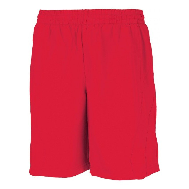 100% polyester à séchage rapide. 2 poches côtés. Taille élastiquée avec cordon de serrage. Doublé maille filet. Découpe côté ton sur ton.