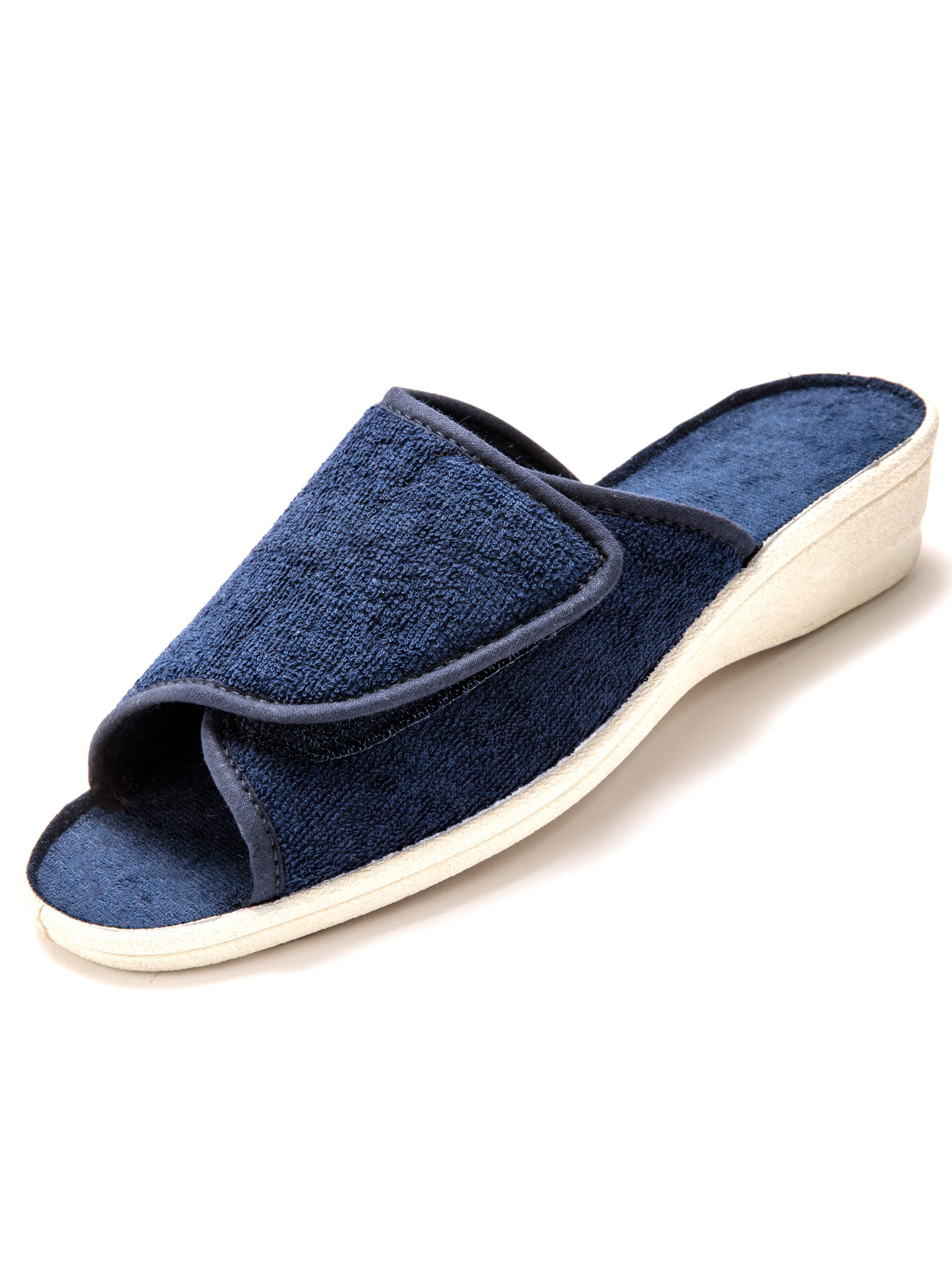 Ces mules ultra-légères offrent une ouverture totale par patte auto-agrippante. Confort du dessus, de la doublure et de la semelle intérieure en éponge. Talon cuvette pour bien loger le pied. Semelle ultra-souple en polyuréthane. Talon : 3,5 cm environ. TOILE TEXTILE