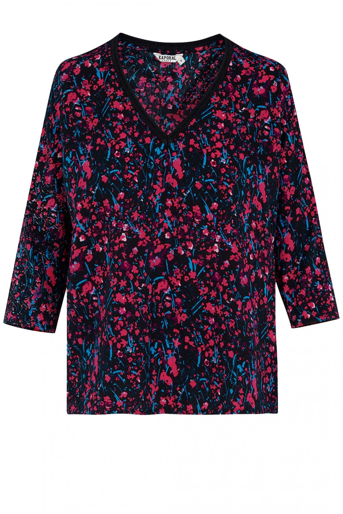 Blouse fleurie col V - Kaporal. Tons: les NOIRS. Coupe: droite ajustée. Col: en V. Manches: 3/4. Logo: métal. Motif: imprimé. Spécificités: article issu du recyclage. Entretien: Lavage en machine. Conseil: prenez votre taille habituelle. Matière: 100% Polyester recyclé.