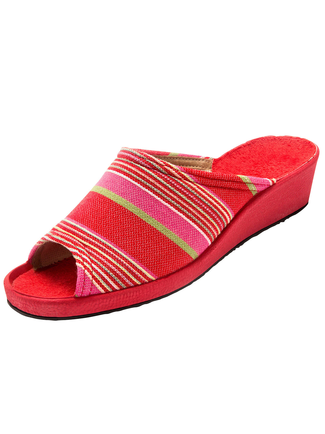 Des mules qui font rimer confort et fantaisie ! Dessus : textile monté sur mousse épaisse. Doublure : textile. Semelle intérieure : éponge saine et douce. Semelle compensée ultra souple: élastomère. Talon cuvette : 3,5 cm environ. Grande largeur. Fabriquées en Europe. TOILE TEXTILE