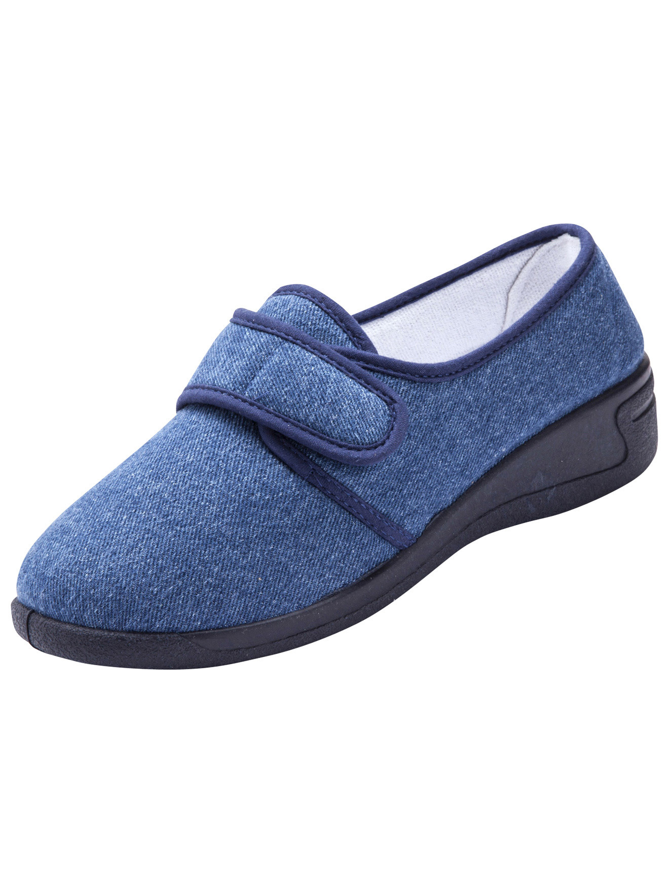 Ces derbies à patte auto-agrippante conviennent aux pieds douloureux. Dessus : toile. Doublure et semelle intérieure éponge, entièrement montées sur mousse. Semelle semi-compensée : élastomère. Talon 3,5 cm environ. Large (G). TOILE TEXTILE