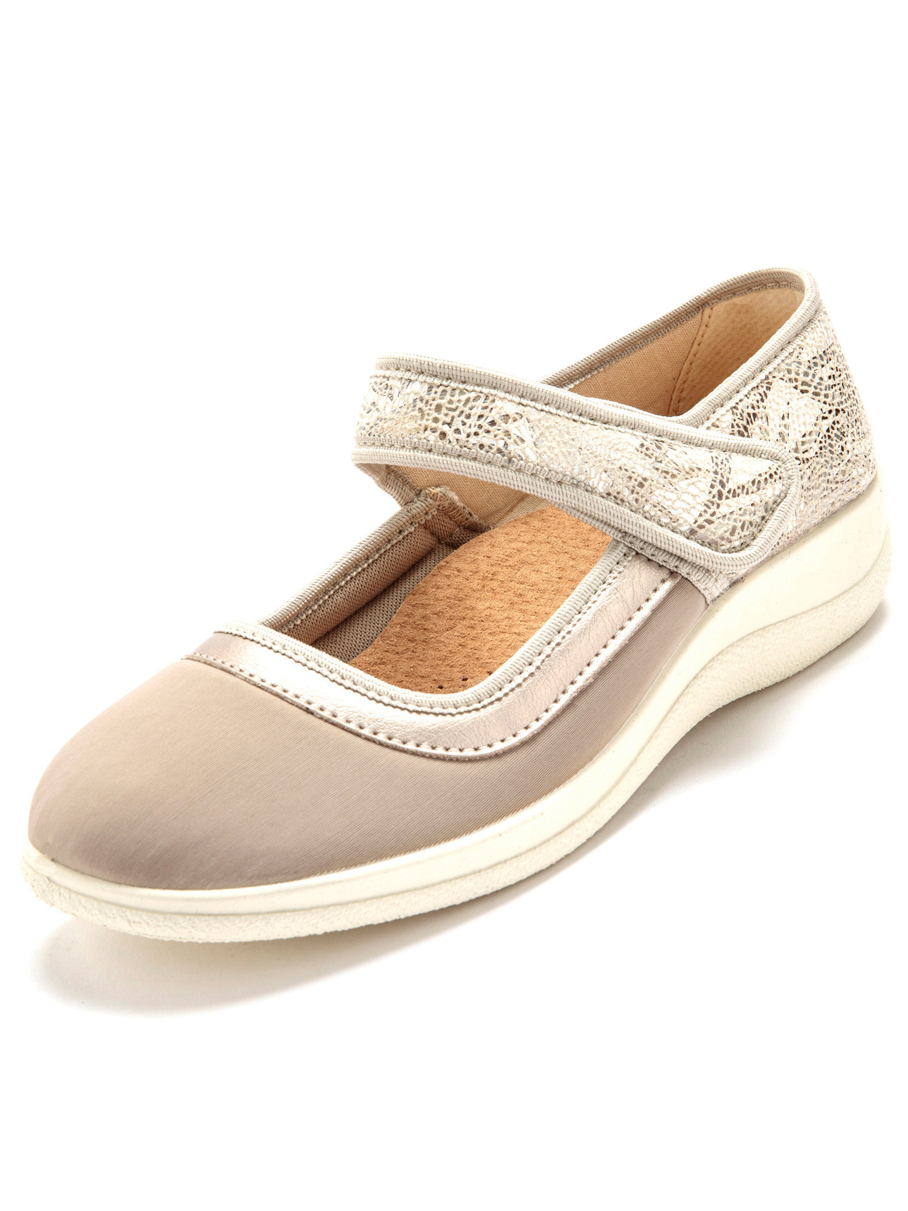Fermées par 1 patte auto-agrippante. Dessus : textile extensible (100% polyester) qui s'adapte en douceur à la morphologie des pieds les plus sensibles. Idéales en cas d'hallux valgus. Doublure : textile. Semelle intérieure : cuir sur mousse, amovible pour laisser la place à vos propres semelles correctrices. Semelle : élastomère. Talon : 3,5 cm environ. Largeur confort (F). CUIR PLEINE FLEUR