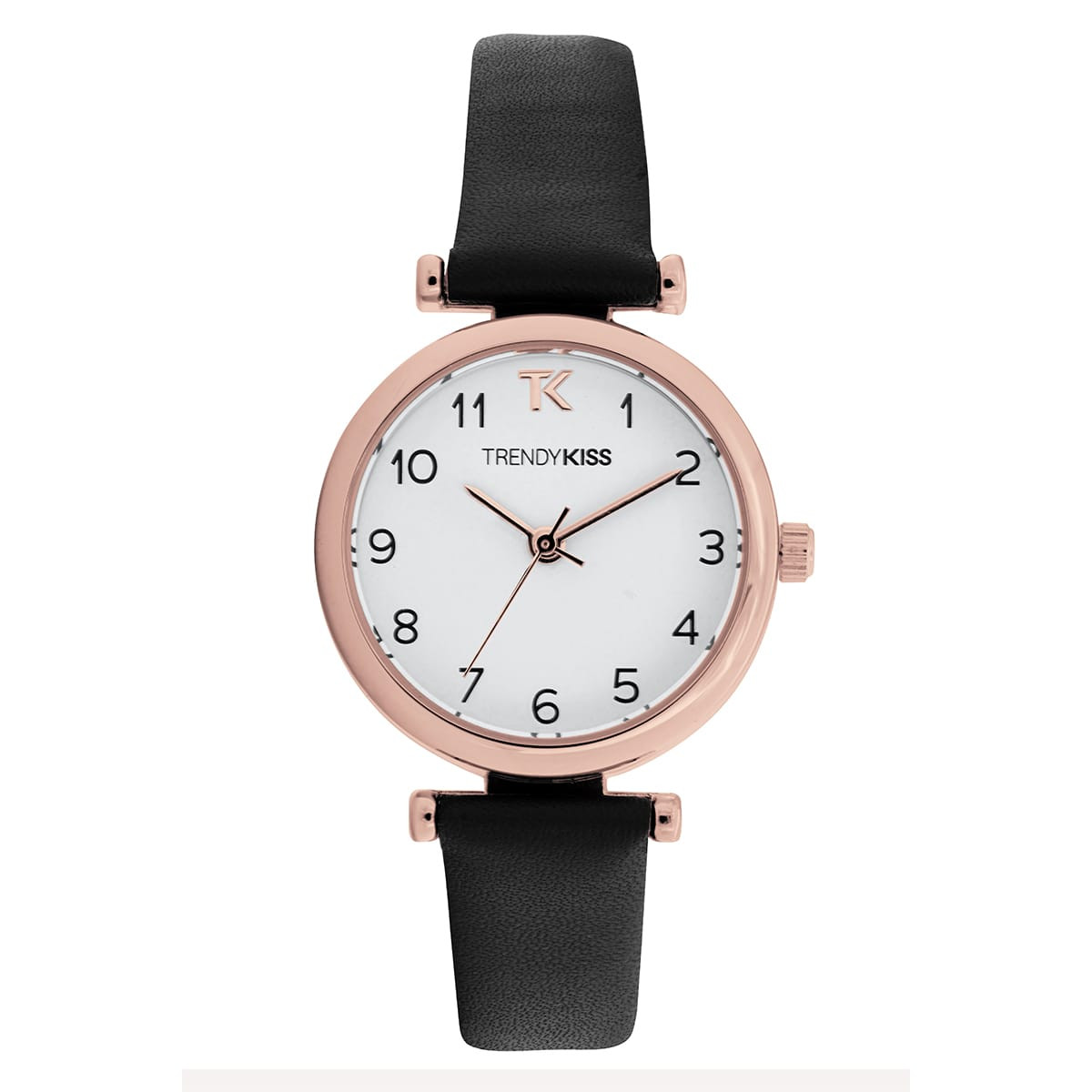 Information sur l'offre : Trendy Kiss – TRG10134-01 – montre femme – Analogique -- Boitier rond métal doré rose – Cadran blanc – Bracelet en cuir noir