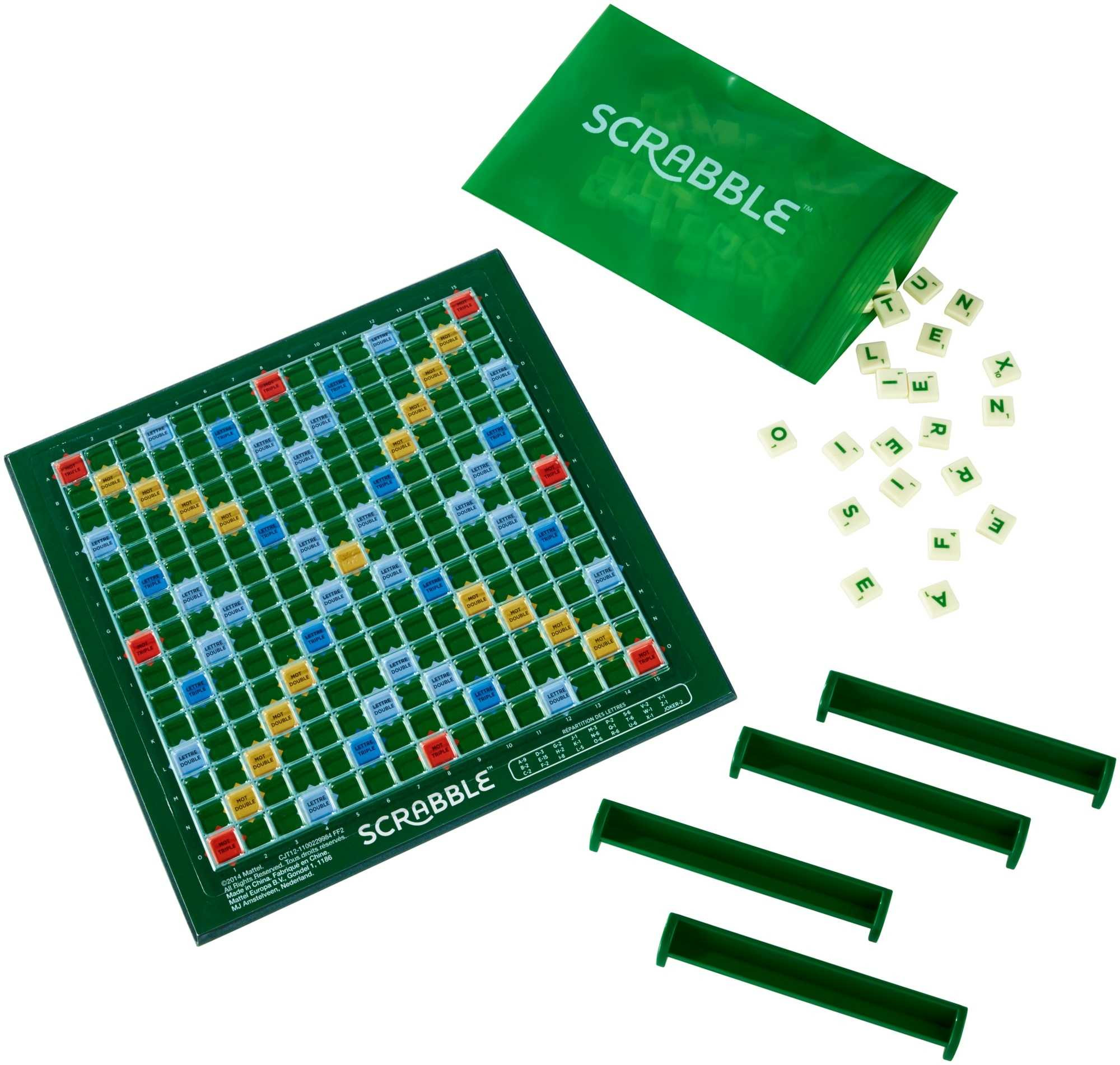 Maintenant, le jeu stratégique de Scrabble peut voyager avec vous ! Que vous jouiez sur des trains, des avions ou des sommets, ce favori dans le monde entier va où vous allez. Scrabble Voyage contient un plateau de jeu avec grille texturée pour maintenir les lettres en place : vous n'avez plus qu'à placer vos lettres en épelant votre prochain mot. De 2 à 4 joueurs. Contient un plateau de jeu, 4 chevalets, 100 lettres, un sac et les règles du jeu. À partir de 10 ans. Caractéristiques : - Genre recommandé : Garçon - Age recommandé (min) : 10 an(s) - Age recommandé (max) : 99 an(s) - Thème : Scrabble - Pays d'origine : Chine - Largeur : 190,5 mm - Profondeur : 190,5 mm - Hauteur : 190,5 mm - Largeur du colis : 185 mm - Profondeur du colis : 40 mm - Hauteur du colis : 185 mm - Poids du paquet : 228 g - Type d'emballage : Boîte fermée - Matériau de l'emballage : Plastique - Nombre de colis : 1 - Adapté uniquement aux adultes : Non - Type d'unité commerciale : Consumer Unit ou UVC unité de vente consommateur tel que vendu au consommateur - Saisonnalités : Permanent, Fin d'année - (cdm) Pays de distribution autorisés (ISO 3166-1) : France - (cdm) Est un accessoire : Jouet - Langues de l'emballage (format ISO 639) : Multicolore - Langues du manuel (format ISO 639) : Multicolore - Unité de facturation de caisses d'expédition (interne) : Oui - Unité commandeable de caisses d'expédition (interne) : Oui - Unité d'expédition des caisses (interne) : Oui - Pays d'importation (ISO 3166-1) : Chine - Unité de facturation de casier principal (externe) : Oui - Unité recommandable du casier principal (externe) : Oui - Unité de distribution de casier principal (externe) : Oui - Poids brut de la palette : 251,8 kg - Nouveau réapprovisionnement reconduit (dm) : Reconduit - Contient des aliments ou des boissons : Non - (cdm) Safety directive language (2009/48/CE) : Multicolore - Commander une quantité multiple : 6 - (cdm) NPD category : JEUX POUR ENFANTS - Quantité par carton d'expédition : 6 pièce(s) - Largeur de palette : 80 cm - Longueur de palette : 120 cm - Hauteur de palette : 195 cm - Nombre de cartons par palette : 135 - Nombre de cartons par couche : 15 - Nombre de couches par palette : 9 - Largeur du carton principal : 24,5 cm - Longueur du carton principal : 20,5 cm - Hauteur du carton principal : 20 cm - Poids brut du carton principal : 1,68 kg - Quantité par carton principal : 6 pièce(s) - GTIN du carton principal (EAN/UPC) : 10887961104728 - Quantité de commande minimum : 6 pièce(s) - Unité de facture : Oui - Unité commandable : Oui - Unité de distribution : Oui - Code de produit de douane (TARIC) : 9504908000