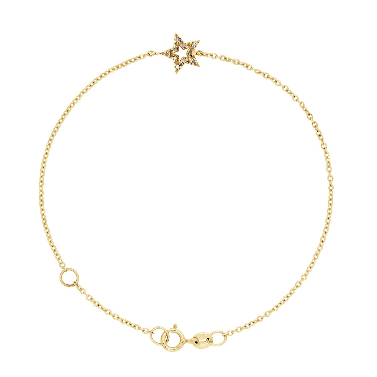 Bracelet Etoile Or Diamants 0,12 Cts, Chaîne forçat, réglable - STAR
