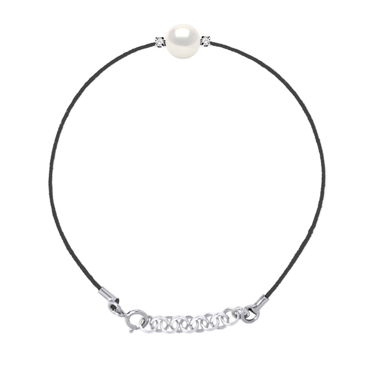 Bracelet Diamant 0. 06 Cts (2 x 0. 03 cts)Taille Brillant Qualité Hsi ( Couleur H - Qualité SI)Perle de culture d'eau douce 8-9mm Qualité AAA+Lien Nylon - Longueur ajustable : de 14 à 18 cm Argent 925 MillièmesPoids : 1. 05 g Tous nos bijoux sont fabriqués à la main dans nos ateliers par nos Artisans Bijoutiers. Ils vous sont livrés dans un écrin PRESTIGE et accompagnée de leur Certificat d'Authenticité et de Garantie Internationale. Composition détaillée : 50 % Diamant, 30 % Perle de Culture, 15 % Argent 925 et 5 % Lien nylon Entretien : Votre bijou NOVA DIAMONDS est résistant à l’eau et ne vous demandera pas d’entretien, si ce n’est quelques précautions : évitez de l’exposer au chlore de la piscine ainsi qu’aux produits cosmétiques et d’entretien : - Pour lui conserver son état neuf, conservez -le dans son pochon en tissu. - Pour le nettoyer, utilisez un peu d'eau chaude savonneuse et essuyez le avec un chiffon doux et sec  pour ne pas le rayer. NOVA DIAMONDS s'engage sur la Qualité de ses bijoux en garantissant toutes ses créations pendant une période de 5 ans. Toutes les créations sont élaborées à partir de diamants et matériaux de haute Qualité, anallergiques et suivant des méthodes de fabrication respectueuses de la Joaillerie.