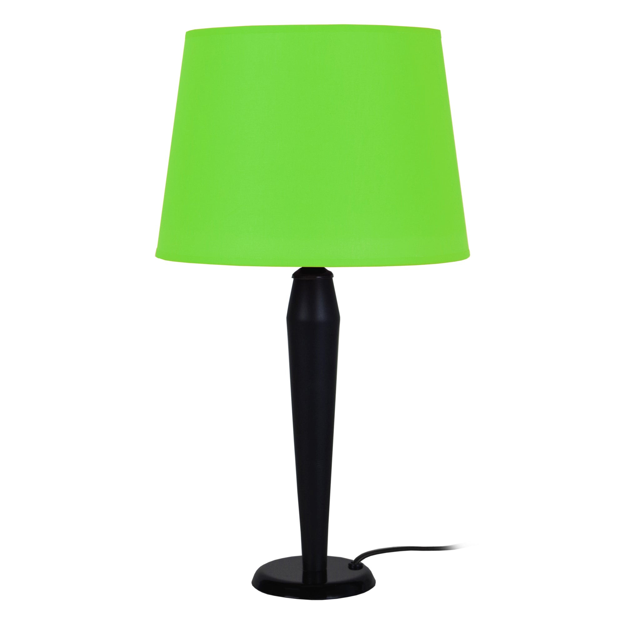 Éclairez votre espace d'un style élégant, simple et contemporain grâce à cette lampe de table. Fabriquée en acier avec une finition peinture époxy, le corps de cette lampe arbore une silhouette tubulaire conique et un pied-socle rond large. L'abat-jour en tissu épuré diffuse la lumière d'une ampoule de 40 W ou équivalent LED (non comprise) pour créer une jolie ambiance tamisée, soit à votre chambre, bureau, vestibule etc.Lampe de chevet DINA P conique métal et bois noir - Abat-jour tissu couleur vert forme tambour - Douille E27 x1 lumière - Ampoule non inclus conseillé: LED 7W (halogène, maxi. 40W) type standard A19 - Projection lumineuse ambiant - Connexion réseau électrique: prise électrique de type C (Europlug) ou de type G (UK) - Interrupteur sur le câble électrique - Style pop color - Classe de Protection II - Indice de protection: IP20 - Dimmable , dimmer non inclus - Tension de fonctionnement : 230V - Tension d'alimentation : 230V - Dimension abat-jour: Hauteur 18cm x Longueur 25cm x Largeur 20cm - Dimension global: Hauteur 46cm x Longueur 25cm x Largeur 25cm - Poids net du produit: 0,7Kg