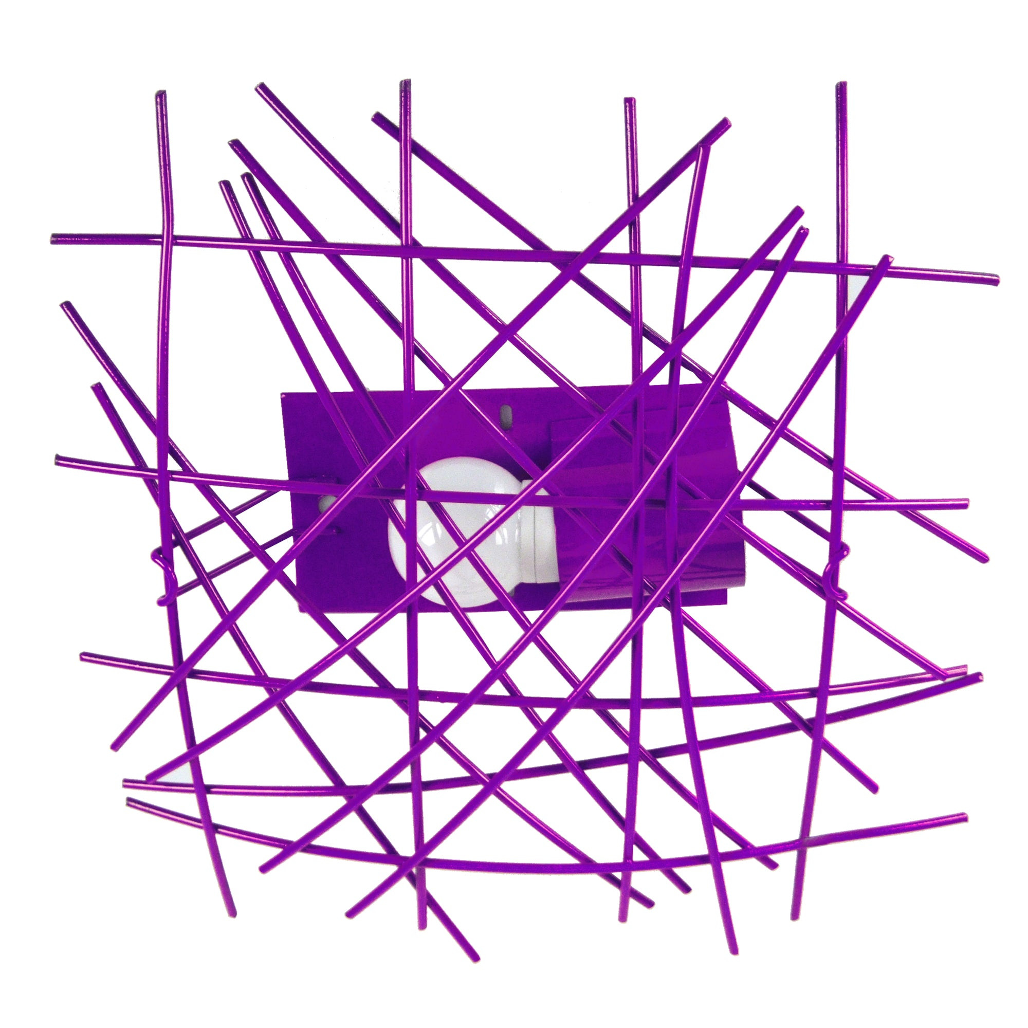 Le désordre de chaque filaire, dans son ensemble finit par créer une harmonie et une certaine aura de beauté, qui donneront à votre plafond un air exclusif, mais qui s'intégrera parfaitement dans le style, du moderne à l'industriel. Si vous équipez ce plafonnier d'une ampoule vintage, vous créerez une ambiance unique dans votre salon, cuisine, entrée ou couloir. - Plafonnier INCERTUS géométrique métal violet - Abat-jour acier couleur Violet forme abstract - Douille E27 x1 lumière - Ampoule non inclus conseillé: LED 7W (halogène, maxi. 40W) type globe G30 - Projection lumineuse directions multiples - Connexion réseau électrique: boîtier de connexion isodom - Interrupteur non inclus - Style industriel - Classe de Protection II - Indice de protection: IP20 - Dimmable , dimmer non inclus - Tension de fonctionnement : 230V - Tension d'alimentation : 230V - Dimension abat-jour: Hauteur 3cm x Longueur 30cm x Largeur 30cm - Dimension global: Hauteur 13cm x Longueur 35cm x Largeur 35cm - Poids net du produit: 1,2Kg