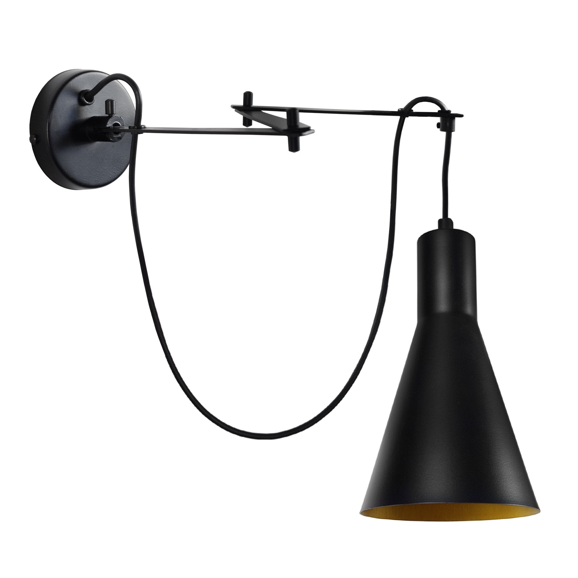 Équipé d'un bras pivotant, plat, d'une patère de fixation au mur, d'un cordon électrique qui a une douille á l'extrémité et un abat-jour en verre transparent - cette applique est libre pour accompagner le mouvement du bras, qui va vous laisser mettre la lumière dans un ray de 180º au point juste où vous en avez besoin. C'est le luminaire qui peut bien s'accrocher au-dessus du votre chevet pour la dernière lecture du jour et vous laisser bien reposer. C'est aussi bien pour votre bureau, cuisine ou salon où vous avez votre coin privilégié. Applique TOSEL KRAKE *Style industrielmétalmétal* Couleur Noir *Forme: bras *Dimensions du produit installé : Hauteur: 70 cm, Longueur: 20 cm, Largeur: 20 cm,Diamètre: 20 cm, Profondeur: 20 cm, Non réglable en hauteur.*Materiel/(Materiaux) de l' (les) Abat-jour(es):métal tôle d'acier *Dimensions de l'abat-jour:Supérieur 14 cm, Inférieur 14 cm, Hauteur 24 cm, cm.* Matériaux du produit, Tôle, tube, fil d'acier, aluminium où laiton 100% recyclables,- Peinture électrostatique sur le métal à base de polymères en poudre et à très faibles émissions de COV (composés organiques volatils), respectueuse de l’environnement, - *Finition : peinture électrostatique sur le métal à base de polymères en poudre et à très faibles émissions de COV -, composés organiques volatils. *Forme abajourconique *Éclairage intérieur, * Tension électrique : 220 à 250 Volts. * Isolation électrique : classe, II. *Indice de protection aux poussières : IP20. *Culot, E271 lumière, * Ampoule max. 40W (non incluse). Professionnel, disponible, répondant dans un délai maximum de 48 heures, 6 jours sur 7 (de 10h00 à 19h00 heure portugaise) à toutes les questions posées, soit sur la plateforme où l'achat est effectué ou a été effectué, soit par téléphone au +351 244 890 160.