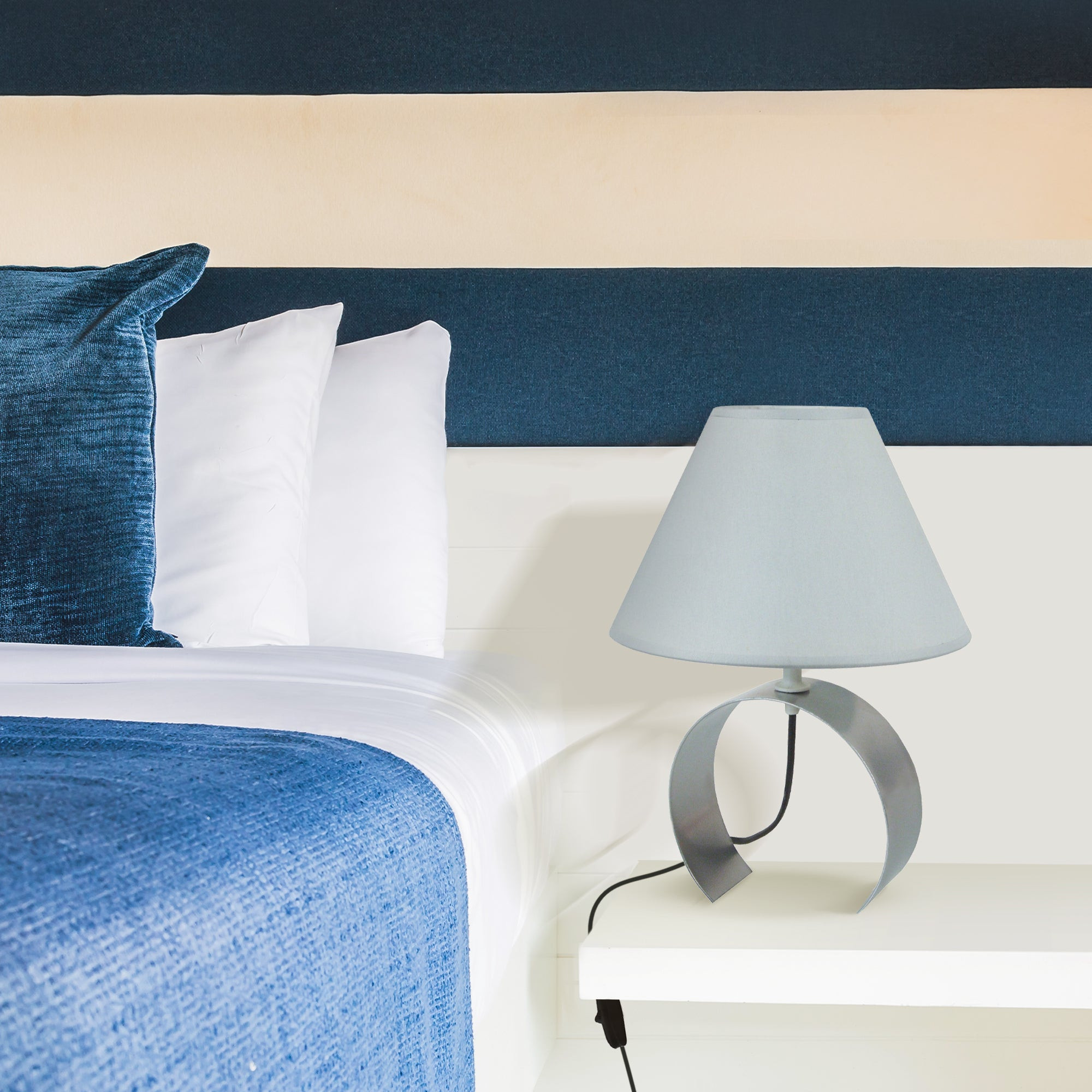 La conception moderne de la lampe est compacte et convenant à toute coiffeuse, table de chevet ou bureau. Elle est assez lumineuse pour ajouter une touche d'élégance à la pièce et s'agencera à tous les styles de décoration! Cette lampe est très pratique: placez-la dans une pièce non seulement pour éclairer, mais aussi comme décoration. Vous pouvez la placer dans les salons, salles familiales, bureaux, dortoirs universitaires ou les bars, hôtels, cafés ou autres endroits. Lampes à poser TOSEL KOLI *Style pop colormétalmétal* Couleur Aluminium*Forme: demi-cercle *Dimensions du produit installé : Hauteur: 31 cm, Longueur: 22 cm, Largeur: 22 cm,Diamètre: 22 cm, Profondeur: 22 cm, Non réglable en hauteur.*Materiel/(Materiaux) de l' (les) Abat-jour(es):tissucoton*Dimensions de l'abat-jour:Supérieur 9 cm, Inférieur 22 cm, Hauteur 15 cm, cm.* Matériaux du produit, Tôle, tube, fil d'acier, aluminium où laiton 100% recyclables,- Peinture électrostatique sur le métal à base de polymères en poudre et à très faibles émissions de COV (composés organiques volatils), respectueuse de l’environnement, - *Finition : peinture électrostatique sur le métal à base de polymères en poudre et à très faibles émissions de COV -, composés organiques volatils. *Forme abajourconique *Éclairage intérieur, * Tension électrique : 220 à 250 Volts. * Isolation électrique : classe, II. *Indice de protection aux poussières : IP20. *Culot, E14 1 lumière, * Ampoule max. 40W (non incluse). Professionnel, disponible, répondant dans un délai maximum de 48 heures, 6 jours sur 7 (de 10h00 à 19h00 heure portugaise) à toutes les questions posées, soit sur la plateforme où l'achat est effectué ou a été effectué, soit par téléphone au +351 244 890 160.