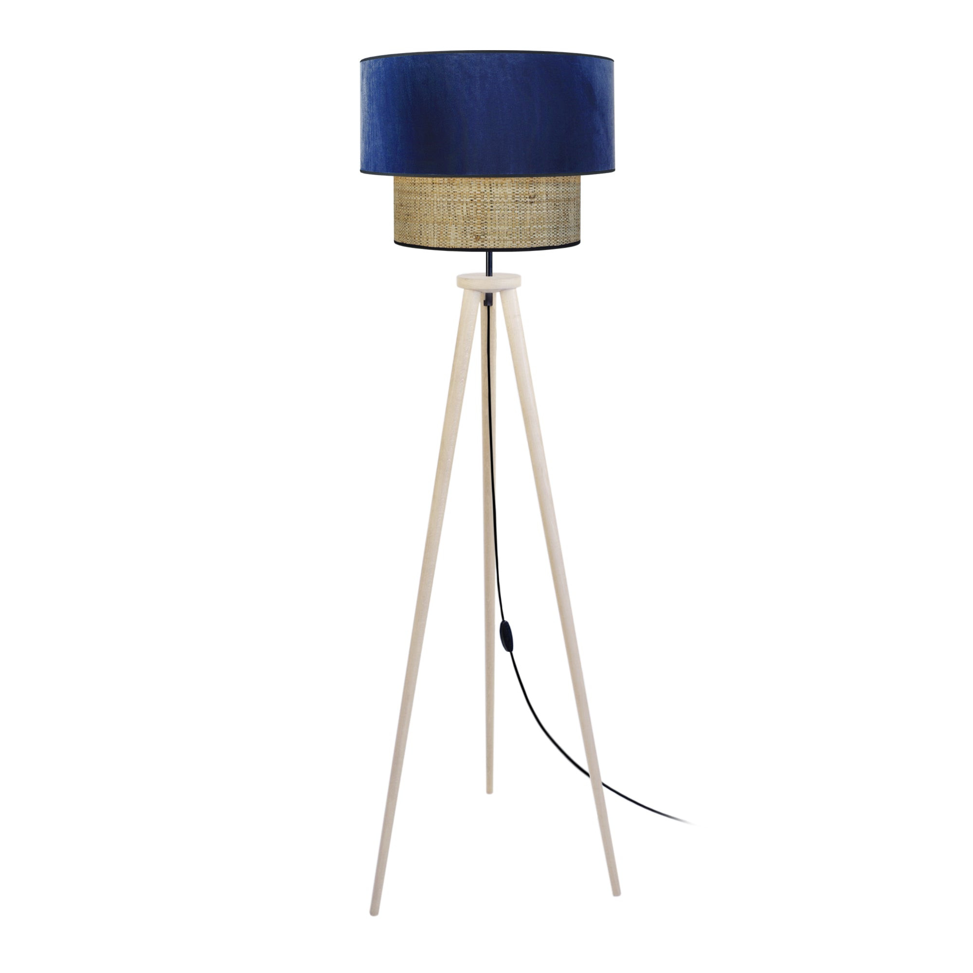 COCHIN T - Lampadaire trépied bois naturel et velours bleu