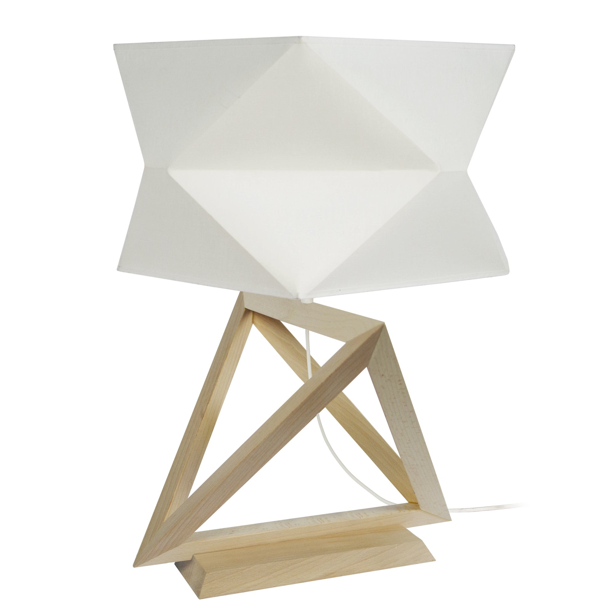 TÉTRAÈDRE 3T - Lampe a poser géométrique bois naturel et blanc