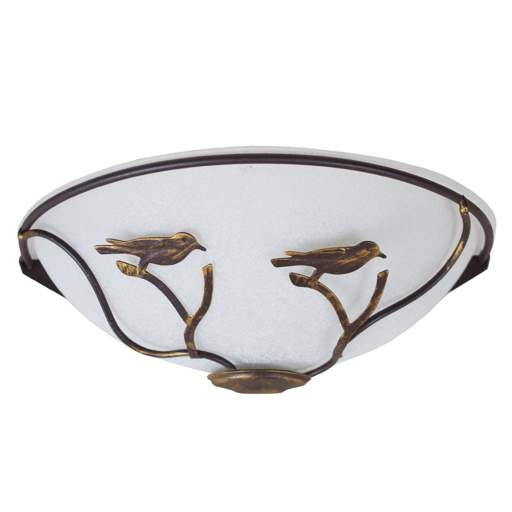 Applique BIRDS demi bol métal marron et or - Abat-jour verre couleur satiné forme bol - Douille E27 x1 lumière - Ampoule non inclus conseillé: LED 7W (halogène, maxi. 40W) type standard A19 - Projection lumineuse vers le bas - Connexion réseau électrique: boîtier de connexion isodom - Interrupteur non inclus - Style ancien et rustique - Classe de Protection II - Indice de protection: IP20 - Dimmable , dimmer non inclus - Tension de fonctionnement : 230V - Tension d'alimentation : 230V - Dimension abat-jour: Hauteur 4cm x Longueur 30cm x Largeur 16cm - Dimension global: Hauteur 16cm x Longueur 30cm x Largeur 30cm - Poids net du produit: 0,7Kg