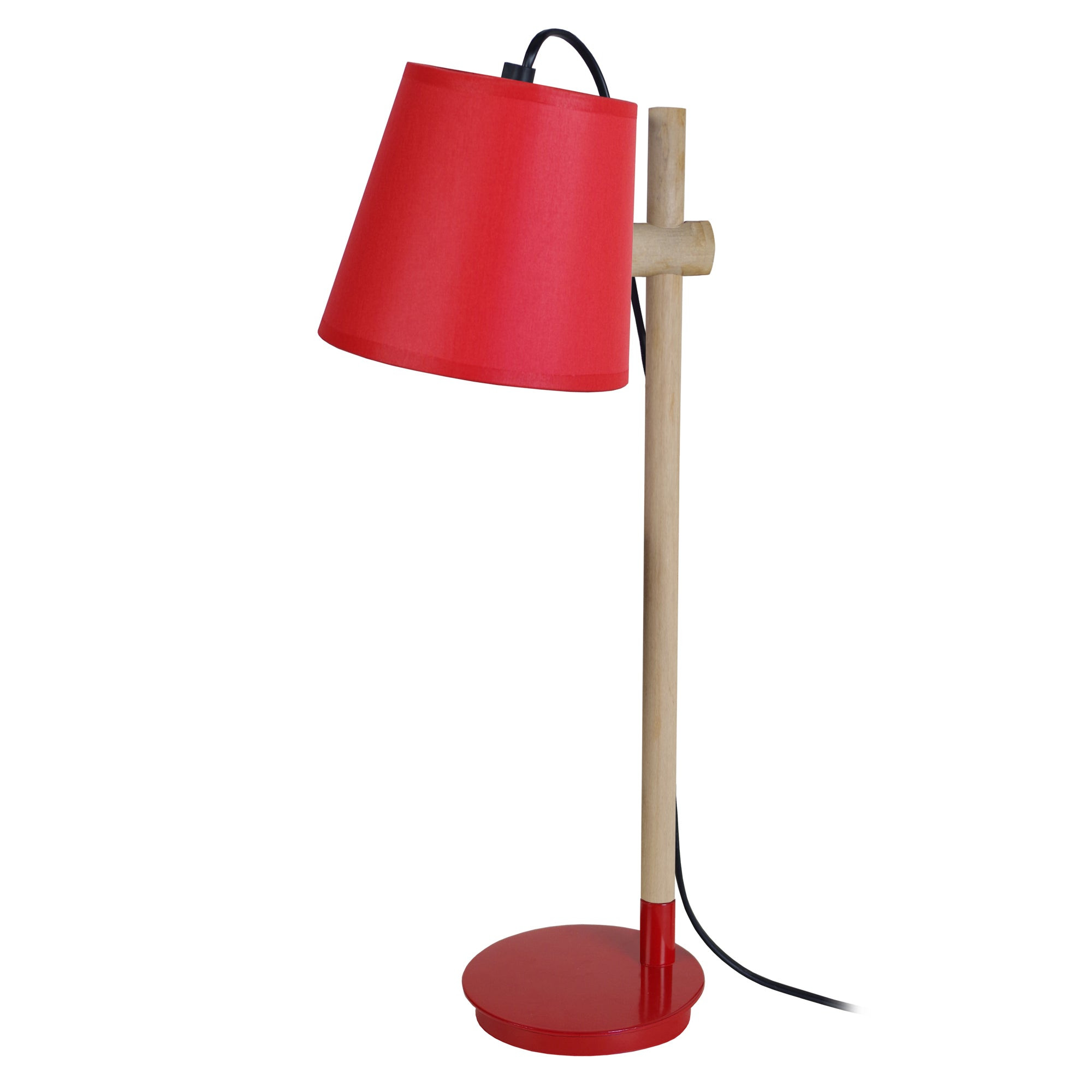 HARRI - Lampe de bureau articulé bois naturel et rouge