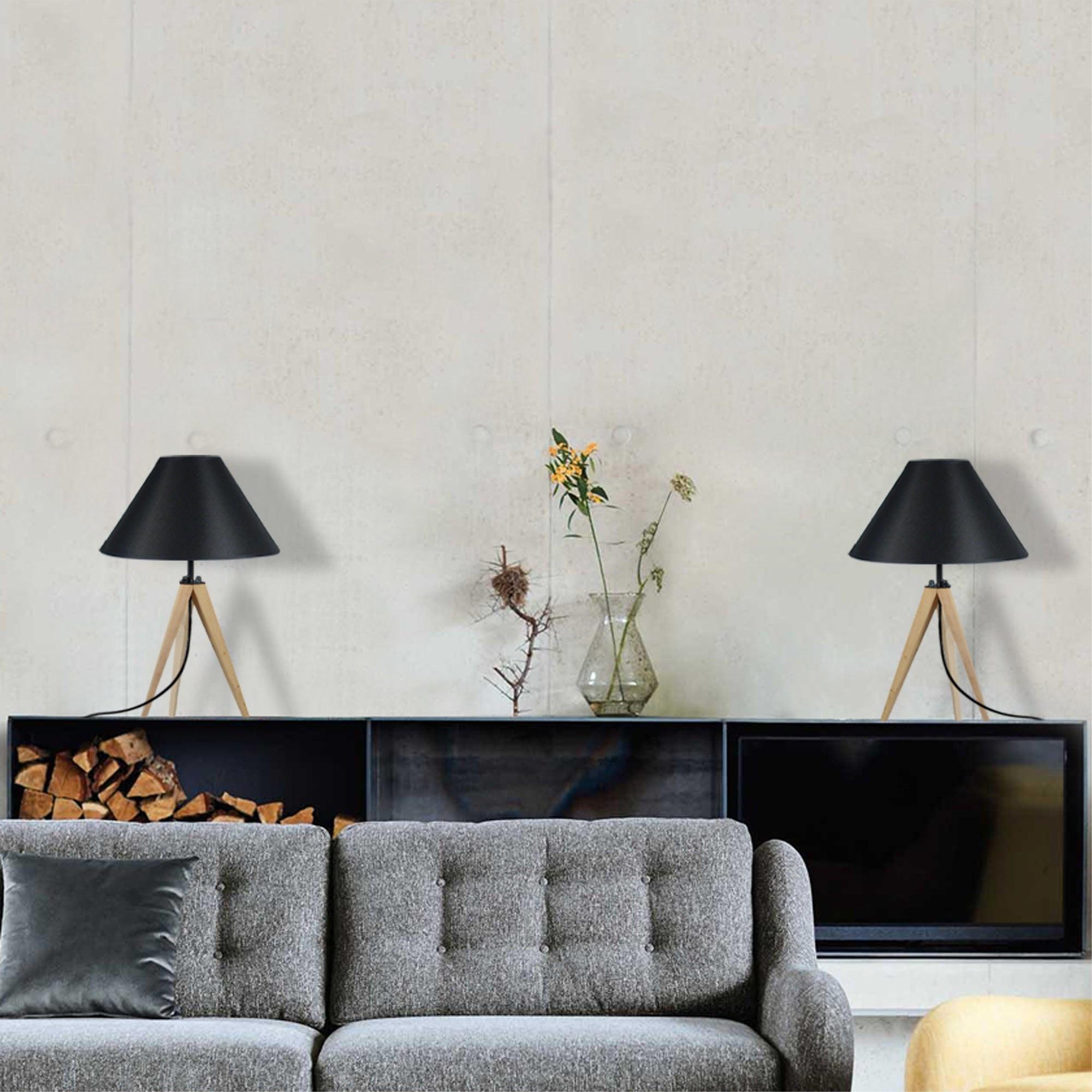 Avec cette lampe tripode en bois de hêtre d'origine française et forêts gérées éco-durable, elle donne une ambiance agréable à n'importe quelle pièce. Elle convient donc non seulement comme lampe de chevet dans la chambre, mais peut également être utilisée comme petite lampe dans le salon ou sur le rebord de la fenêtre. Les trois pieds en bois sont parfaitement assortis à l'abat-jour en tissu, une combinaison qui donne à la lampe de table son look unique de style scandinave. - Lampe de chevet IDUN B trépied bois naturel et noir - Abat-jour tissu couleur noir forme empire - Douille E27 x1 lumière - Ampoule non inclus conseillé: LED 7W (halogène, maxi. 40W) type standard A19 - Projection lumineuse ambiant - Connexion réseau électrique: prise électrique de type C (Europlug) ou de type G (UK) - Interrupteur sur le câble électrique - Style inspiration nordique - Classe de Protection II - Indice de protection: IP20 - Dimmable , dimmer non inclus - Tension de fonctionnement : 230V - Tension d'alimentation : 230V - Dimension abat-jour: Hauteur 18cm x Longueur 30cm x Largeur 10cm - Dimension global: Hauteur 54cm x Longueur 30cm x Largeur 54cm - Poids net du produit: 1Kg