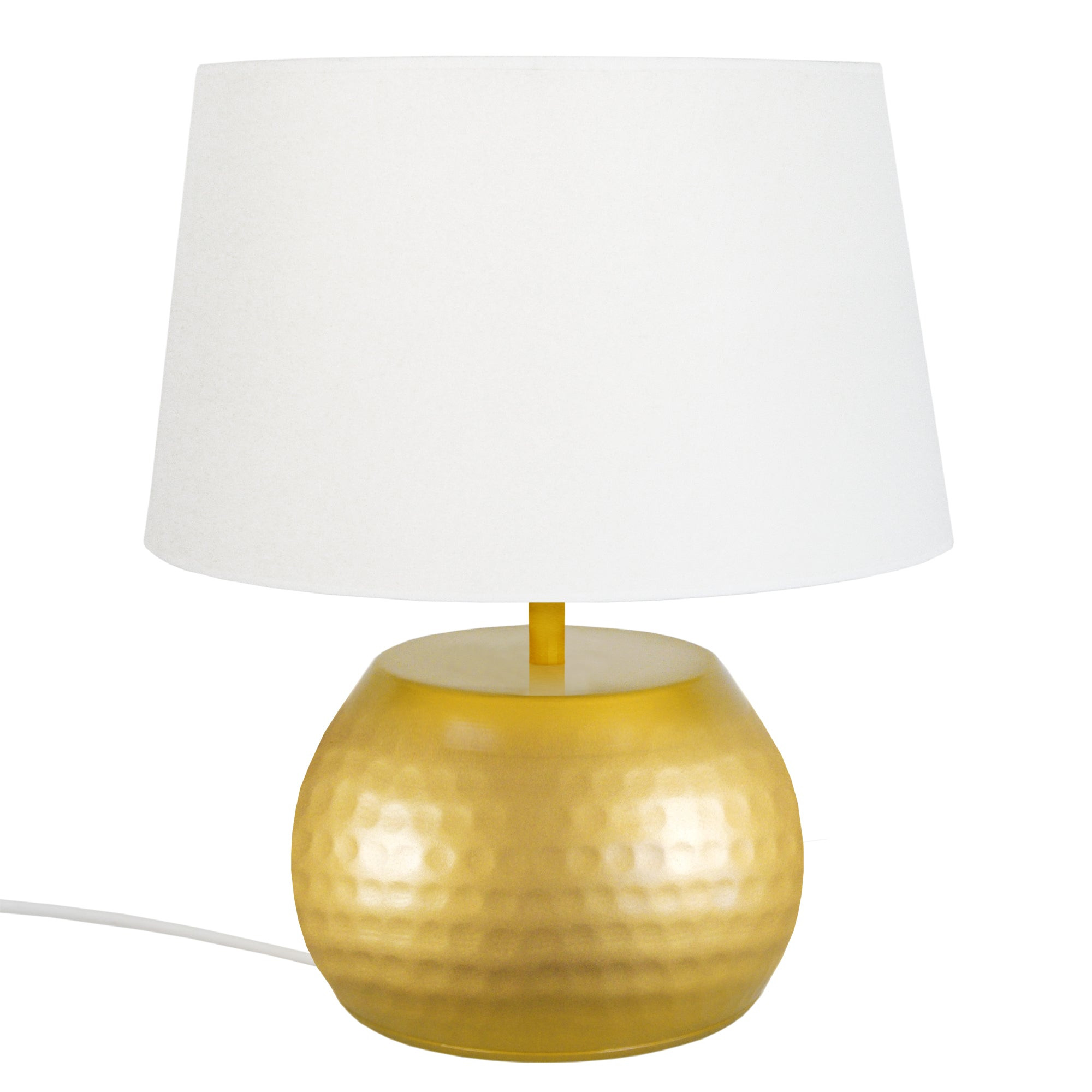 Lampe de chevet BANGALORE globe métal or et écru - Abat-jour tissu couleur blanc forme tambour - Douille E27 x1 lumière - Ampoule non inclus conseillé: LED 7W (halogène, maxi. 40W) type standard A19 - Projection lumineuse vers le bas - Connexion réseau électrique: prise électrique de type C (Europlug) ou de type G (UK) - Interrupteur sur le câble électrique - Style vintage - Classe de Protection II - Indice de protection: IP20 - Dimmable , dimmer non inclus - Tension de fonctionnement : 230V - Tension d'alimentation : 230V - Dimension abat-jour: Hauteur 18cm x Longueur 30cm x Largeur 25cm - Dimension global: Hauteur 37cm x Longueur 30cm x Largeur 30cm - Poids net du produit: 1,5Kg