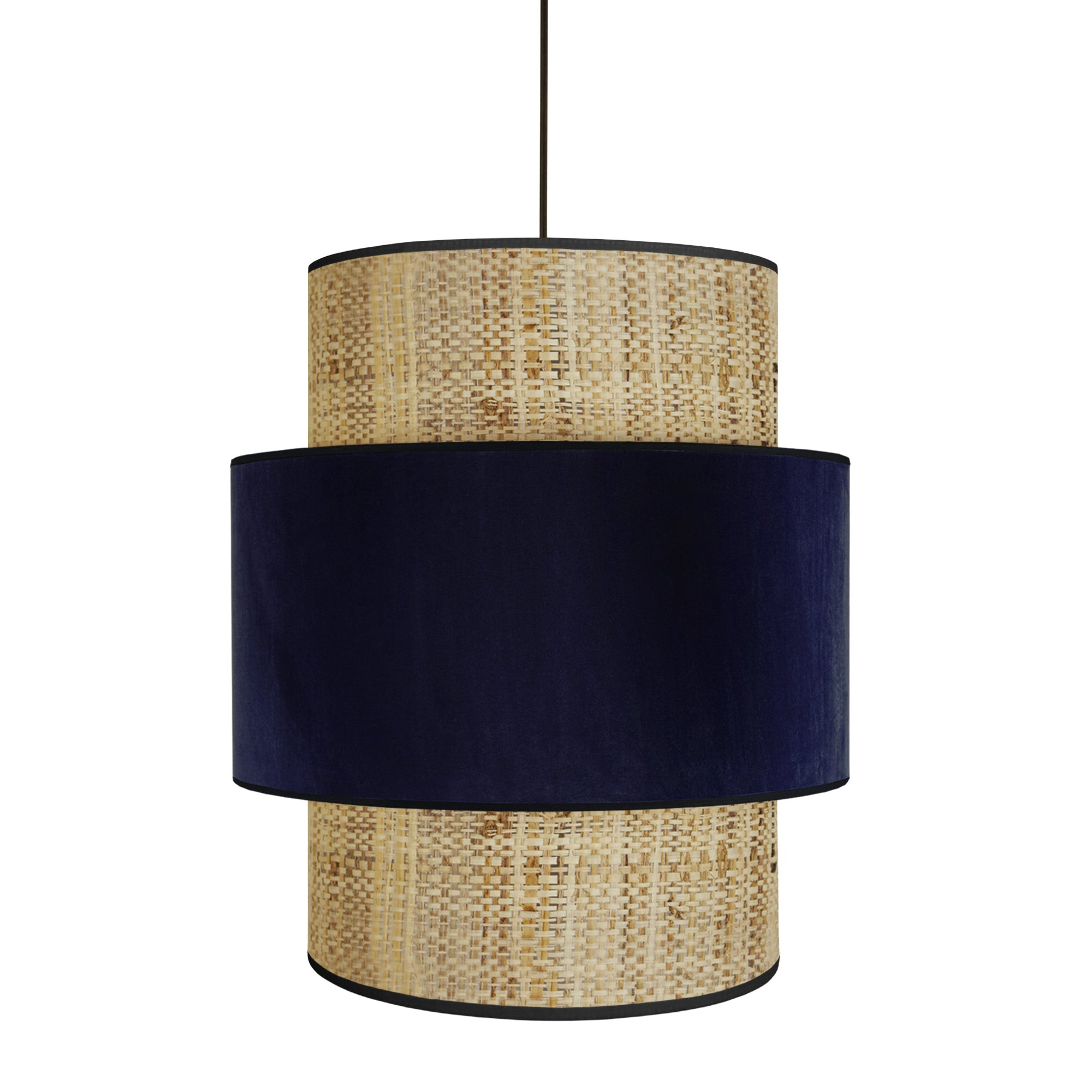 Caractérisée par son abat-jour original, cette suspension se prête aussi bien à une décoration scandinave que contemporaine. Entre des murs lumineux, cette l'opulente suspension apporte une touche graphique harmonieuse dans la pièce à vivre. Vous aimerez ses formes rondes et apaisantes de double abat-jour qui permet d'adoucir la luminosité de l'ampoule pour vous aider à créer une atmosphère conviviale et agréable. Vous pourrez ajuster la suspension en hauteur.Suspension COCHIN cylindrique tissu velours bleu - Abat-jour tissu couleur crème forme cylindrique - Douille E27 x1 lumière - Ampoule non inclus conseillé: LED 7W (halogène, maxi. 40W) type standard A19 - Projection lumineuse ambiant - Connexion réseau électrique: boîtier de connexion isodom - Interrupteur non inclus - Style inspiration nordique - Classe de Protection II - Indice de protection: IP20 - Dimmable , dimmer non inclus - Tension de fonctionnement : 230V - Tension d'alimentation : 230V - Dimension abat-jour: Hauteur 46cm x Longueur 40cm x Largeur 40cm - Dimension global: Hauteur 106cm x Longueur 40cm x Largeur 40cm - Poids net du produit: 1,3Kg