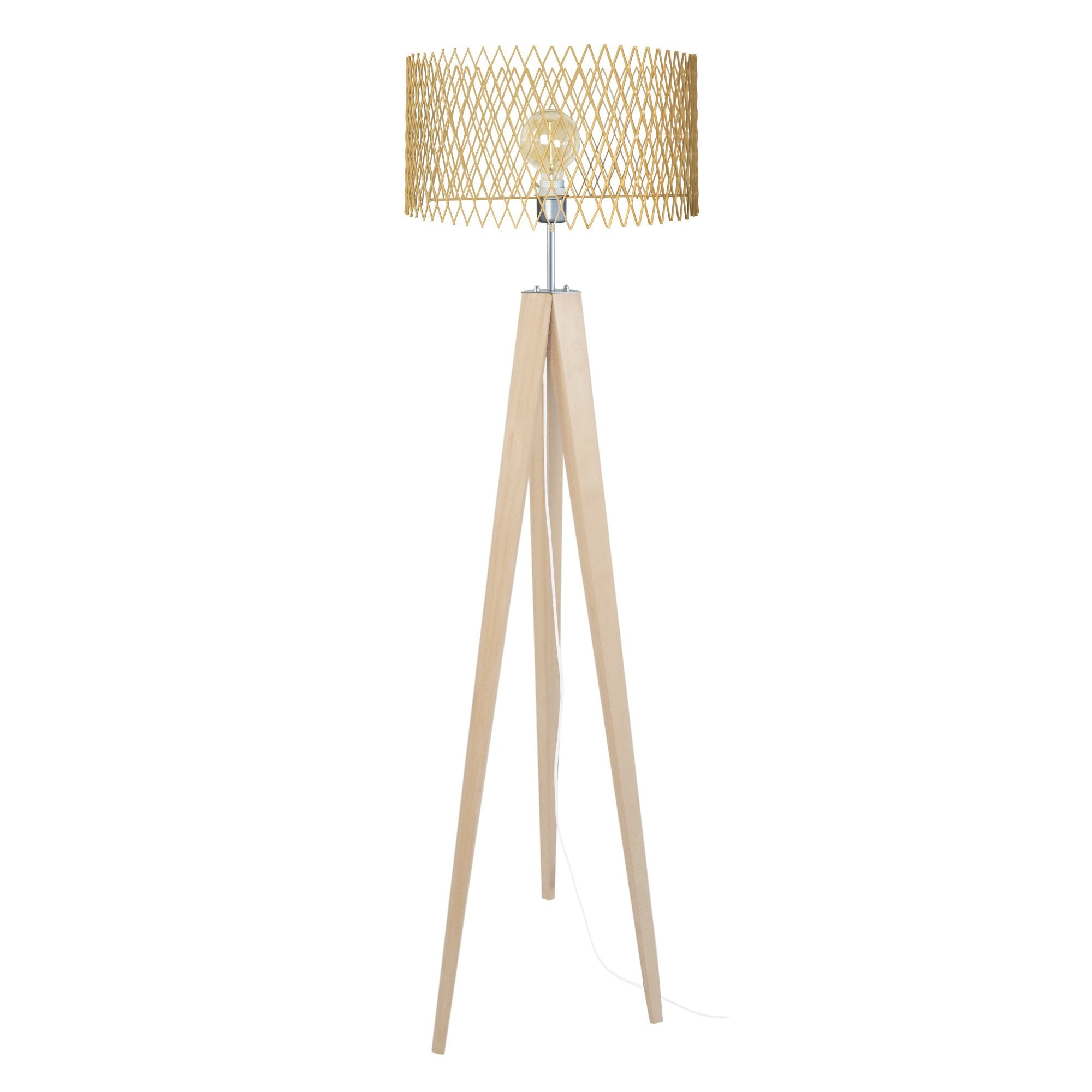 ASTER - Lampadaire trépied bois naturel et jaune pastel