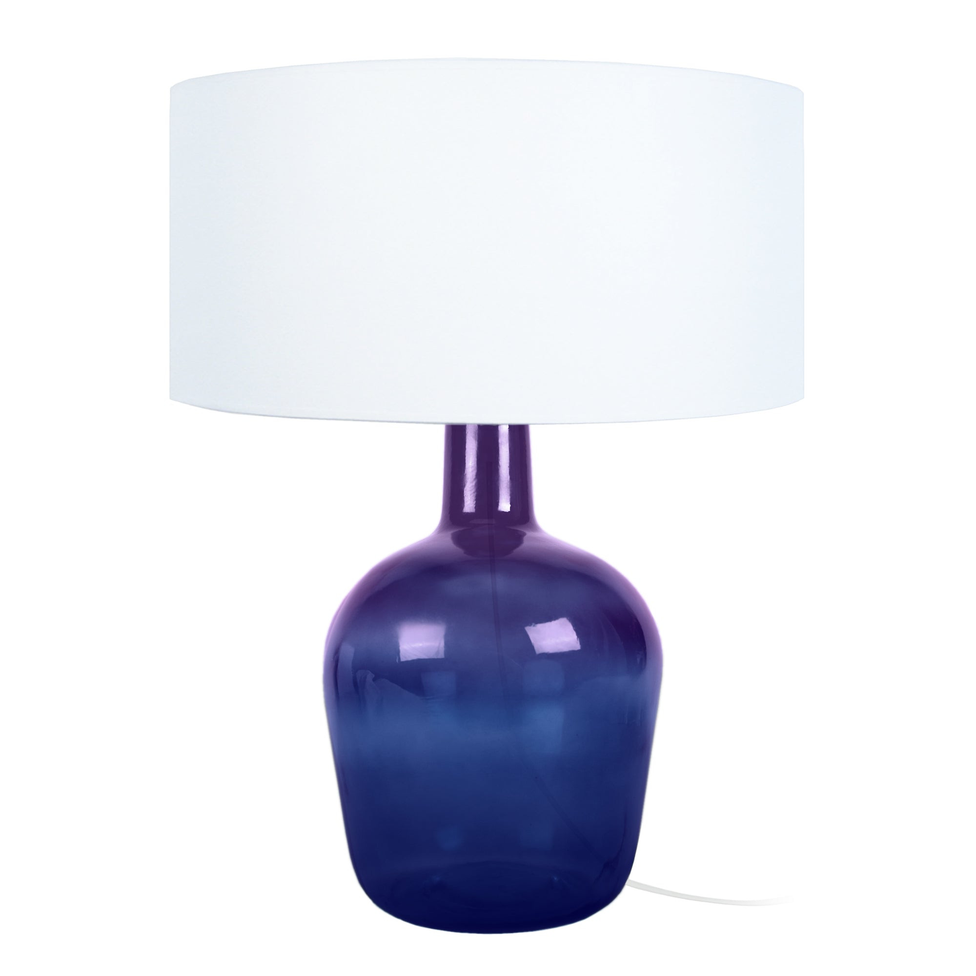 Fabriqué en verre et avec une peinture dans une teinte éclatante, le pied de cette lampe non seulement présente une silhouette en forme de dame-jeanne, comme il était une dame-jeanne à son origine. Au sommet, un abat-jour en tissu enveloppe une ampoule (non inclus) à pour diffuser une lumière vive dans votre espace, soit votre salon, couloir où votre chevet. Dormez bien en sachant que tous les composants de cette pièce sont éco-durables et recyclable quand vous décidées leur fin de vie.Lampe de chevet BORDEAUX bouteille verre violet et blanc - Abat-jour tissu couleur blanc forme cylindrique - Douille E27 x1 lumière - Ampoule non inclus conseillé: LED 7W (halogène, maxi. 40W) type standard A19 - Projection lumineuse ambiant - Connexion réseau électrique: prise électrique de type C (Europlug) ou de type G (UK) - Interrupteur sur le câble électrique - Style urbain - Classe de Protection II - Indice de protection: IP20 - Dimmable , dimmer non inclus - Tension de fonctionnement : 230V - Tension d'alimentation : 230V - Dimension abat-jour: Hauteur 20cm x Longueur 35cm x Largeur 35cm - Dimension global: Hauteur 50cm x Longueur 35cm x Largeur 35cm - Poids net du produit: 1,6Kg