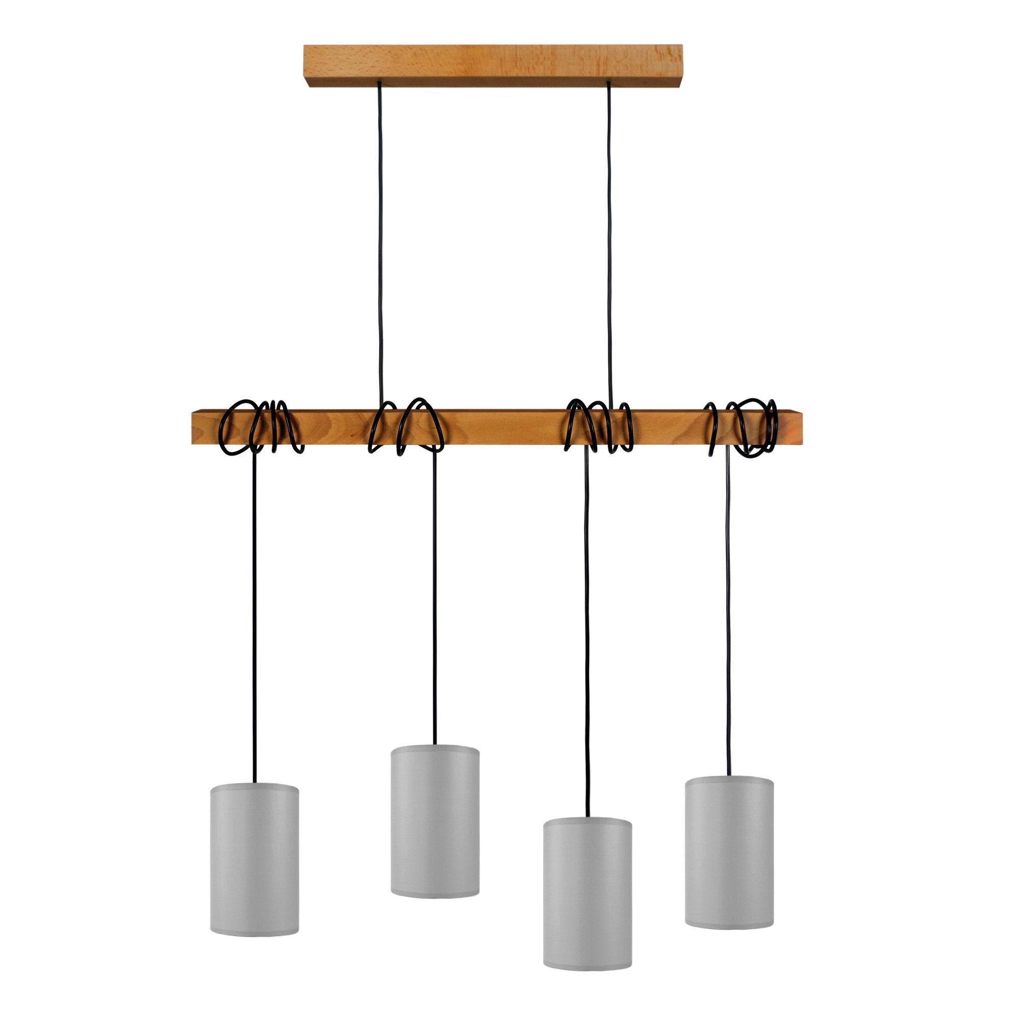 Parmi les matériaux utilisés, on retrouve le bois de hêtre d'origine française, exploité dans des forêts éco-durables. De ce luminaire en forme de poutre se détachent deux cordes qui descendent verticalement vers le bas et supportent une large poutre en bois de hêtre massif. Les câbles sont enroulés de façon apparemment aléatoire autour de cette poutre. Ils se terminent à différentes hauteurs et chaque un support un abat-jour cylindrique, qui cache une ampoule pour une lumière douce et plaisante. - Lustre HARLEM A bar bois foncé et gris - Abat-jour tissu couleur gris forme cylindrique - Douille E14 x4 lumière - Ampoules non inclus conseillé: LED 7W (halogène, maxi. 40W) type balle de golf G11 - Projection lumineuse directions multiples - Connexion réseau électrique: boîtier de connexion isodom - Interrupteur non inclus - Style inspiration nordique - Classe de Protection II - Indice de protection: IP20 - Dimmable , dimmer non inclus - Tension de fonctionnement : 230V - Tension d'alimentation : 230V - Dimension abat-jour: Hauteur 20cm x Longueur 12cm x Largeur 12cm - Dimension global: Hauteur 180cm x Longueur 80cm x Largeur 12cm - Poids net du produit: 2Kg
