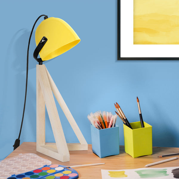 Lampes à poser bureau bois,naturel,jaune,noir,H45xD18xP30cm