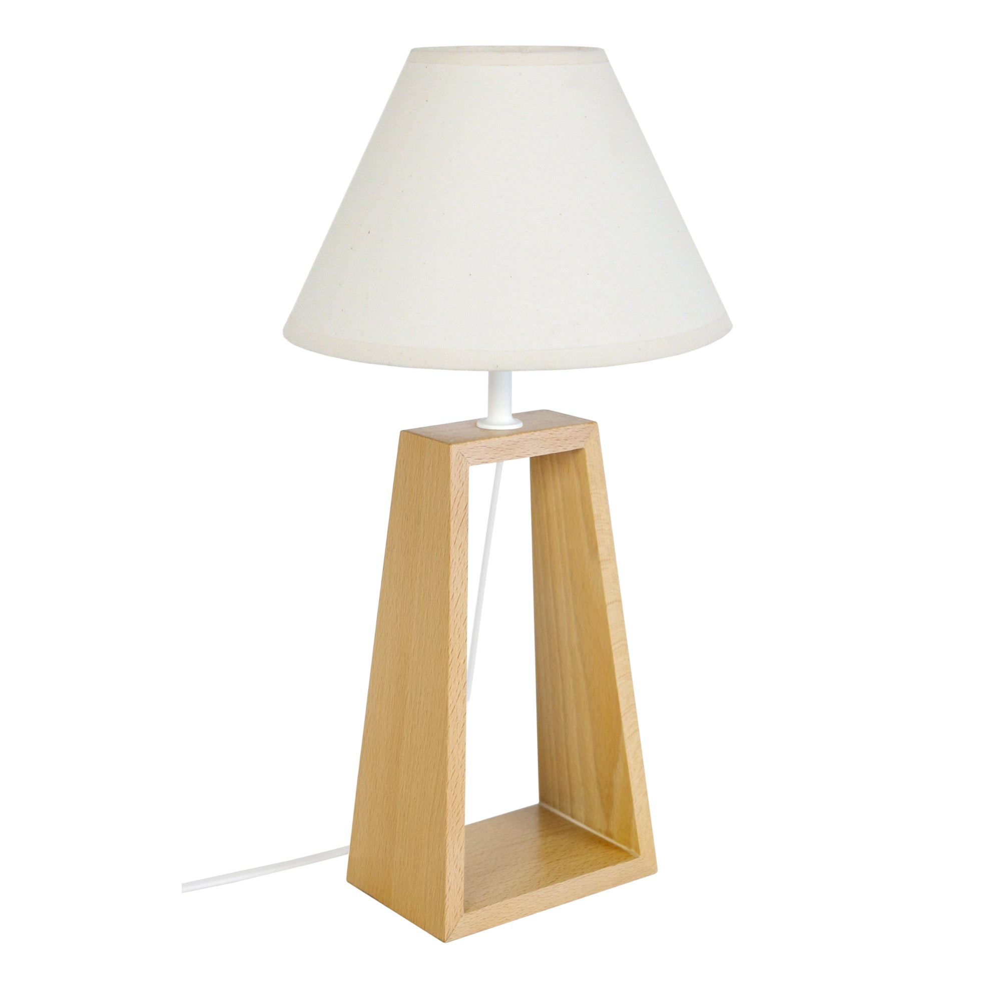 Définie par ses lignes nettes et épurées, cette lampe de table apporte une touche de modernité, tout en éclairant l'espace. Ce luminaire en bois massif offre une base rectangulaire ajourée en son centre, pour une allure minimaliste. Son abat-jour tissu diffuse une belle luminosité provenant d'une ampoule incandescente 40W à culot E14 (non incluse). Bien que sa conception soit résolument contemporaine, cette lampe est polyvalente et peut s'agencer à plusieurs décors et palettes de couleurs. Elle se marie parfaitement avec votre style de décoration, quel qu’il soit. Lampes à poser TOSEL MIKELLI *Style inspiration nordiqueboisbois* Couleur naturel*Forme: triangle *Dimensions du produit installé : Hauteur: 50 cm, Longueur: 22 cm, Largeur: 22 cm,Diamètre: 22 cm, Profondeur: 22 cm, Non réglable en hauteur.*Materiel/(Materiaux) de l' (les) Abat-jour(es):tissucoton*Dimensions de l'abat-jour:Supérieur 9 cm, Inférieur 22 cm, Hauteur 15 cm, cm.* Matériaux du produit, bois de hêtre d'origine française, issu de forêts gérées de manière éco-durable, - Traitement du bois ; essuyé á huile végétal, - *Finition : traité avec de l'huile végétale. *Forme abajourconique *Éclairage intérieur, * Tension électrique : 220 à 250 Volts. * Isolation électrique : classe, II. *Indice de protection aux poussières : IP20. *Culot, E14 1 lumière, * Ampoule max. 40W (non incluse). Professionnel, disponible, répondant dans un délai maximum de 48 heures, 6 jours sur 7 (de 10h00 à 19h00 heure portugaise) à toutes les questions posées, soit sur la plateforme où l'achat est effectué ou a été effectué, soit par téléphone au +351 244 890 160.