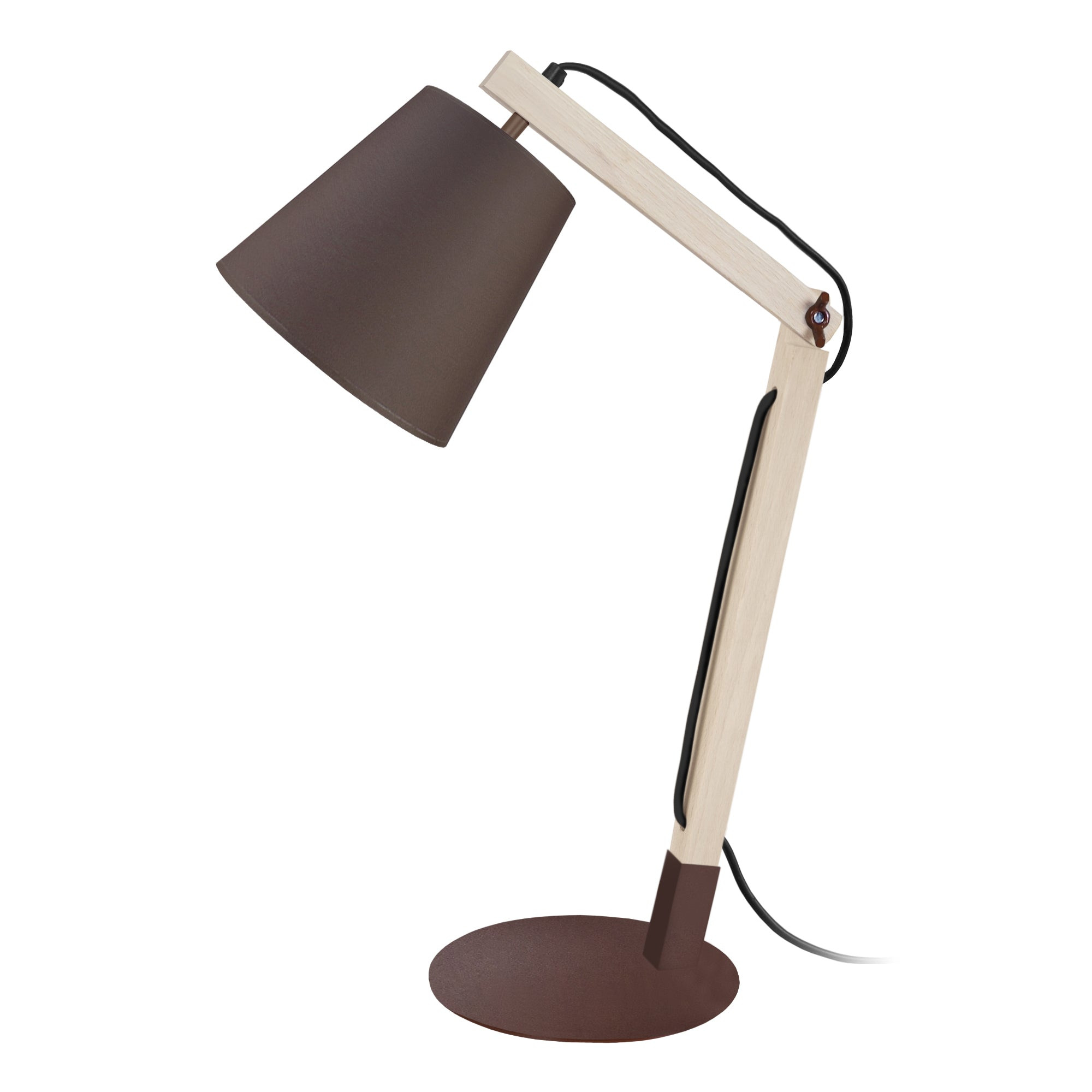 Avec une touche de style contemporain, cette lampe présente une base en fer dans une finition peinture époxy, gage de longévité. Les mats en bois massif vous permettent de régler la hauteur et l’angle en fonction de vos besoins. Cette pièce aux lignes épurées est complétée par un abat-jour en coton effilé qui aide à diffuser sa lumière dans votre espace.Lampe de bureau LOFOTEN articulé bois naturel et marron - Abat-jour tissu couleur marron forme tambour - Douille E14 x1 lumière - Ampoule non inclus conseillé: LED 7W (halogène, maxi. 40W) type standard A19 - Projection lumineuse vers le bas - Connexion réseau électrique: prise électrique de type C (Europlug) ou de type G (UK) - Interrupteur sur le câble électrique - Style inspiration nordique - Classe de Protection II - Indice de protection: IP20 - Dimmable , dimmer non inclus - Tension de fonctionnement : 230V - Tension d'alimentation : 230V - Dimension abat-jour: Hauteur 15cm x Longueur 15cm x Largeur 10cm - Dimension global: Hauteur 70cm x Longueur 28cm x Largeur 28cm - Poids net du produit: 0,9Kg