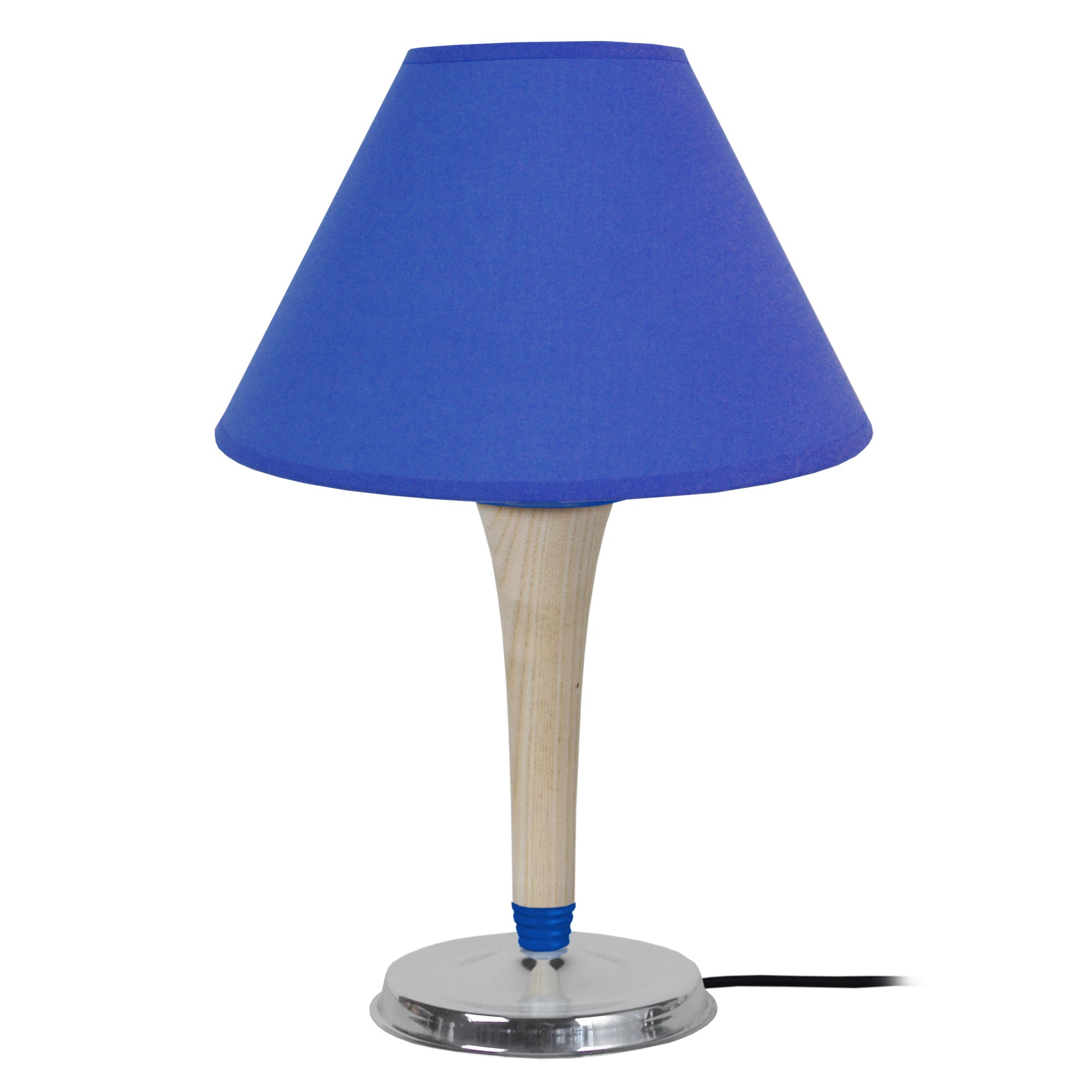 KIROGA - Lampe de chevet conique métal et bois naturel,aluminiumet bleu