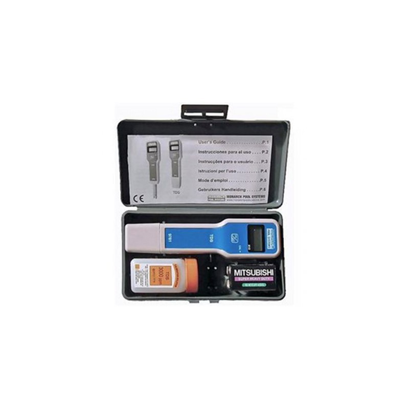 Testeur électronique de sel MONARCH pour piscine. Permet de mesurer le taux de salinité de votre piscine. Affichage numérique, lecture instantanée de la valeur. Inclus un flacon d'étalonnage ainsi qu'une pile. Livré dans une boite de rangement PVC.