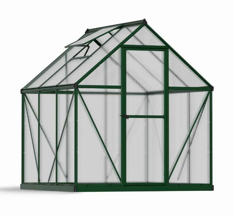 Serre de jardin Mythos Palram 701632 en polycarbonate hautement résistante, transparente et sûre. Construit avec un vitrage à double paroi diffusant la lumière pour une lumière douce et des températures de niveau. Fournit jusqu'à 100% de protection contre les rayons nocifs du soleil (UV). Parois en plastique polycarbonate résilient à vie, ne pas fracturer, jaunir ou opacifier avec le temps. Structure en aluminium robuste et sans rouille. Design épuré et fonctionnel. Serre de bricolage, sans entretien - construite pour durer grâce à des matériaux extrêmement durables. Protège vos plantes des éléments afin que vous puissiez profiter d'une période de croissance prolongée. Les serres sont disponibles en différentes tailles et couleurs.