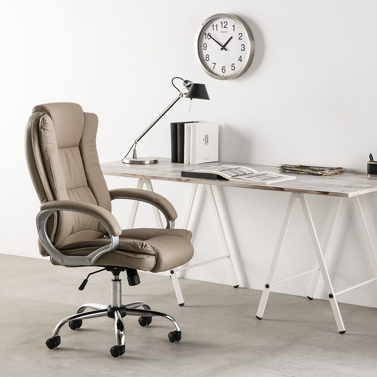Chaise de Bureau Karen Elevable et Fauteuil inclinable en Simili Cuir Taupe