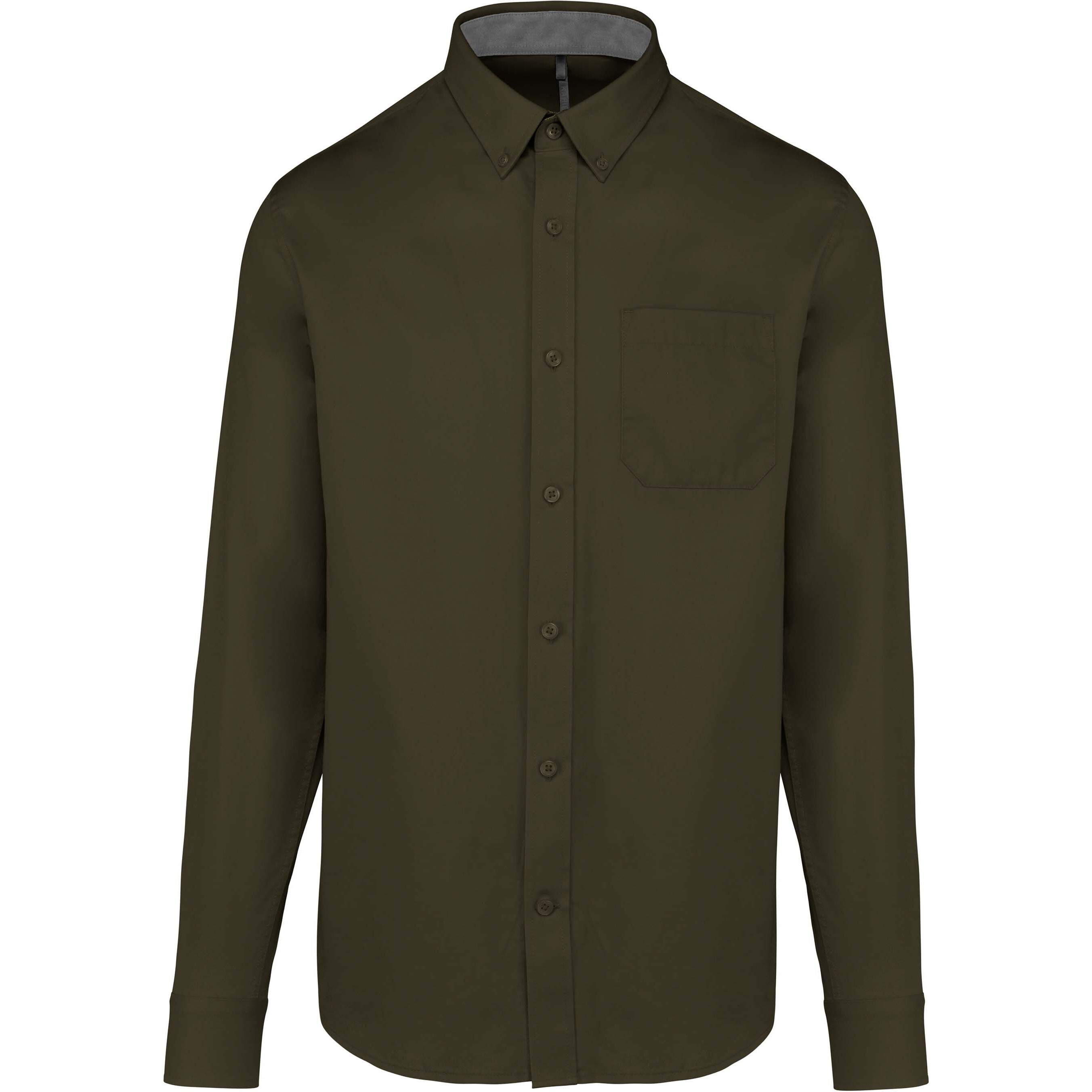 100% coton. Tissu sergé toucher peau de pêche. Pointe de col boutonnée. Boutons ton sur ton. Poche poitrine côté coeur. Intérieur pied de col et poignets contrastés en couleur Oxford silver. Dos avec 2 plis d'aisance et empiècement doublé. Finition coutures rabattues. Poignet réglable avec patte de manche capucin boutonnée. Bouton de rappel.