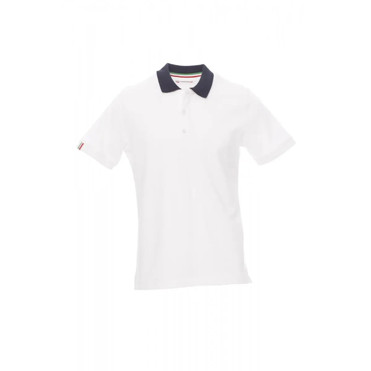 Polo homme à manches courtes, 3 boutons teinte assortie effet nacré, col teinte assortie d'un côté et avec rayures contrastées couleurs drapeau de l'autre, visibles uniquement avec col remonté. Bord de manche droite avec insert fin couleurs drapeau en contraste, col et bord des manches en bord-côte, fentes latérales avec couleurs drapeau, coutures du col couvertes avec ruban en jersey dans couleurs drapeau, ruban de renfort latéral, ruban de renfort à l'intérieur du col - Composition: 100% COTON - Aspect: PIQUET - Poids: 210 GR/MQ - Emballage: 5/25