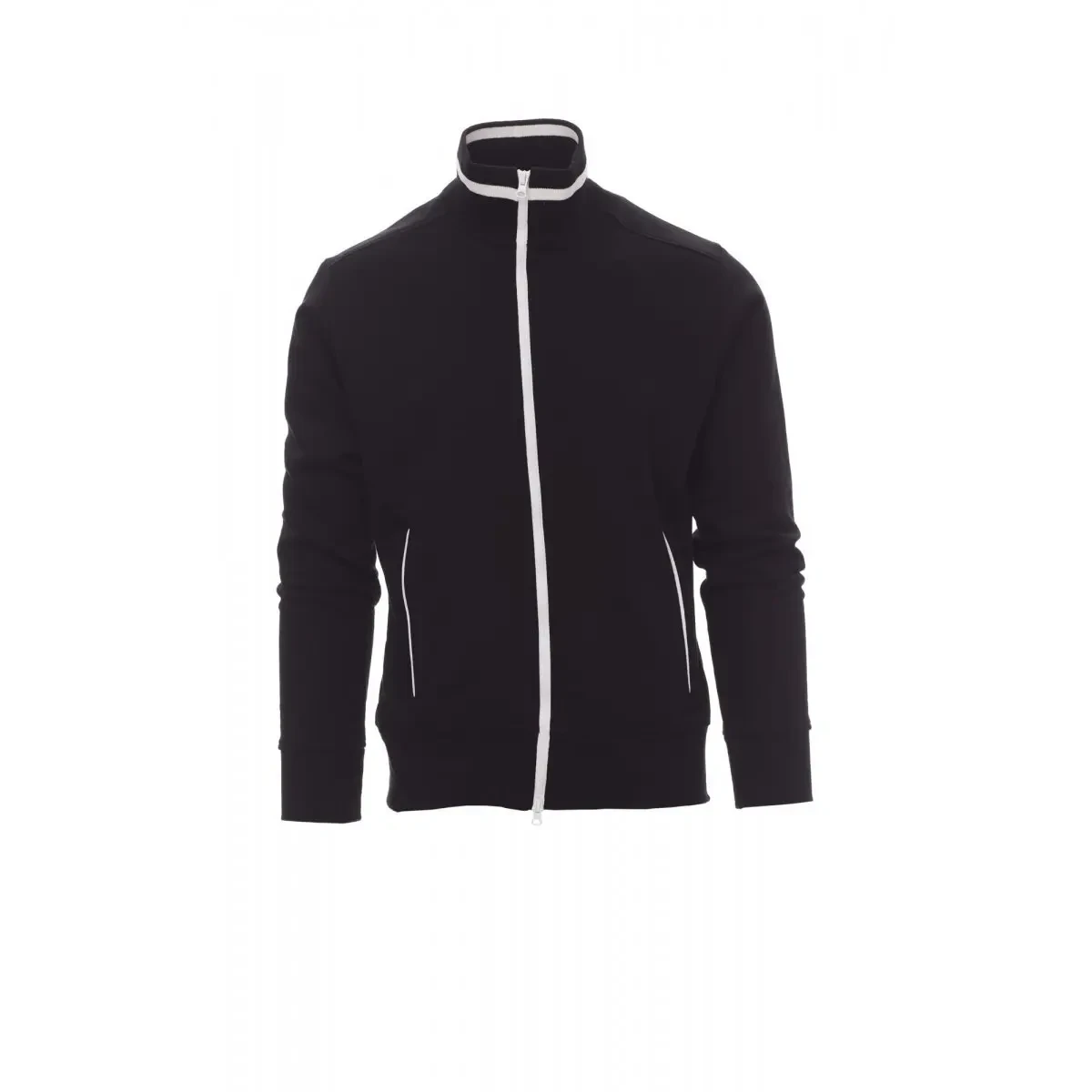 Sweat-shirt homme, full zip SBS en plastique contrasté, avec double curseur en métal. Col en bord-côte avec liseré contrasté repris sur les poches latérales . Manches montées, deux poches extérieures avec zip contrasté, poignets et taille en côtes élastiques. Coutures renforcées. - Composition: 70% COTON + 30% POLYESTER - Aspect: BROSSE - Poids: 300 GR/MQ - Emballage: 5/20