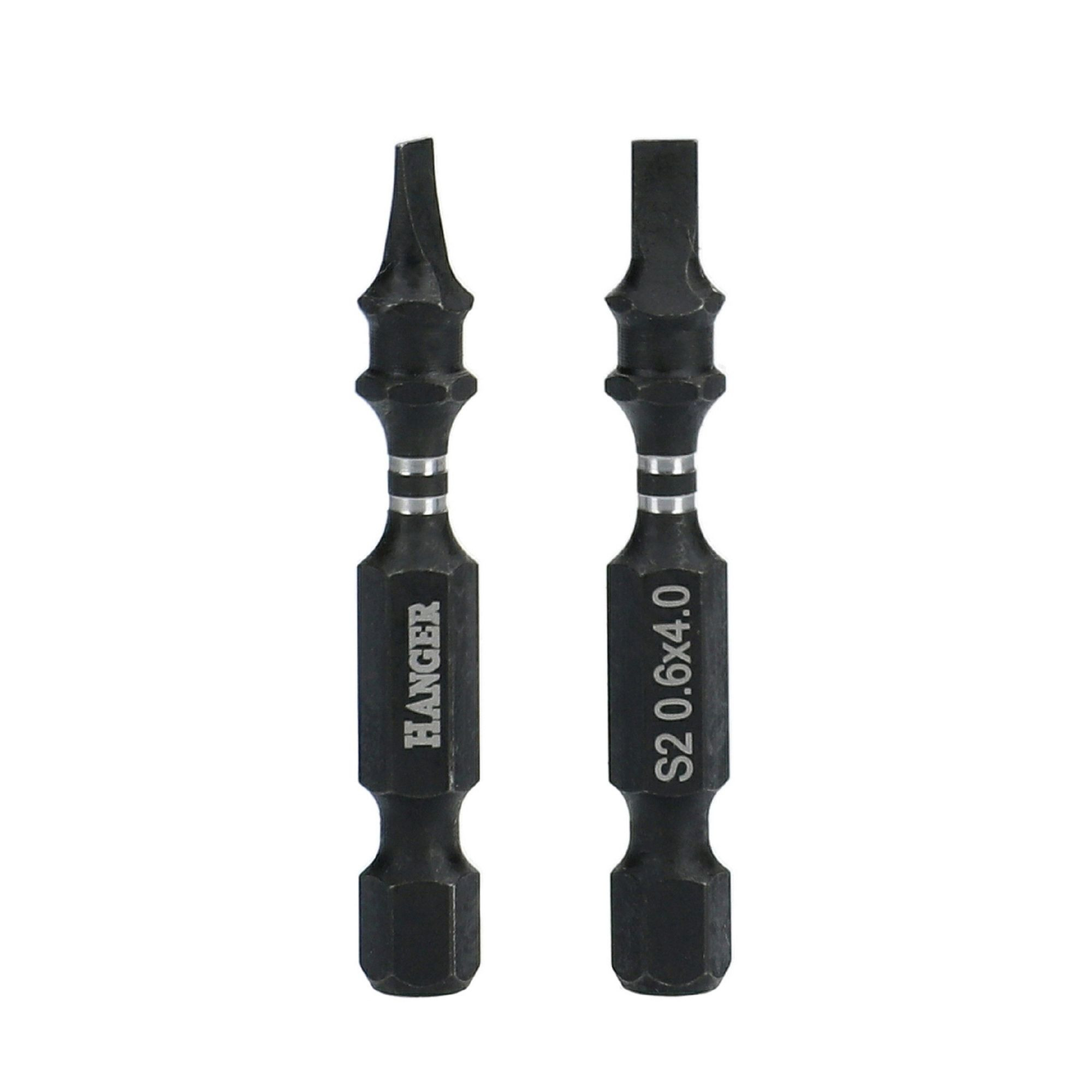 Les embouts impact Hanger pour vis à fente sont fabriqués en acier S2, un matériau reconnu pour sa robustesse. Cette conception garantit une tenue efficace face aux efforts mécaniques, limitant ainsi les risques de déformation lors des vissages intensifs.