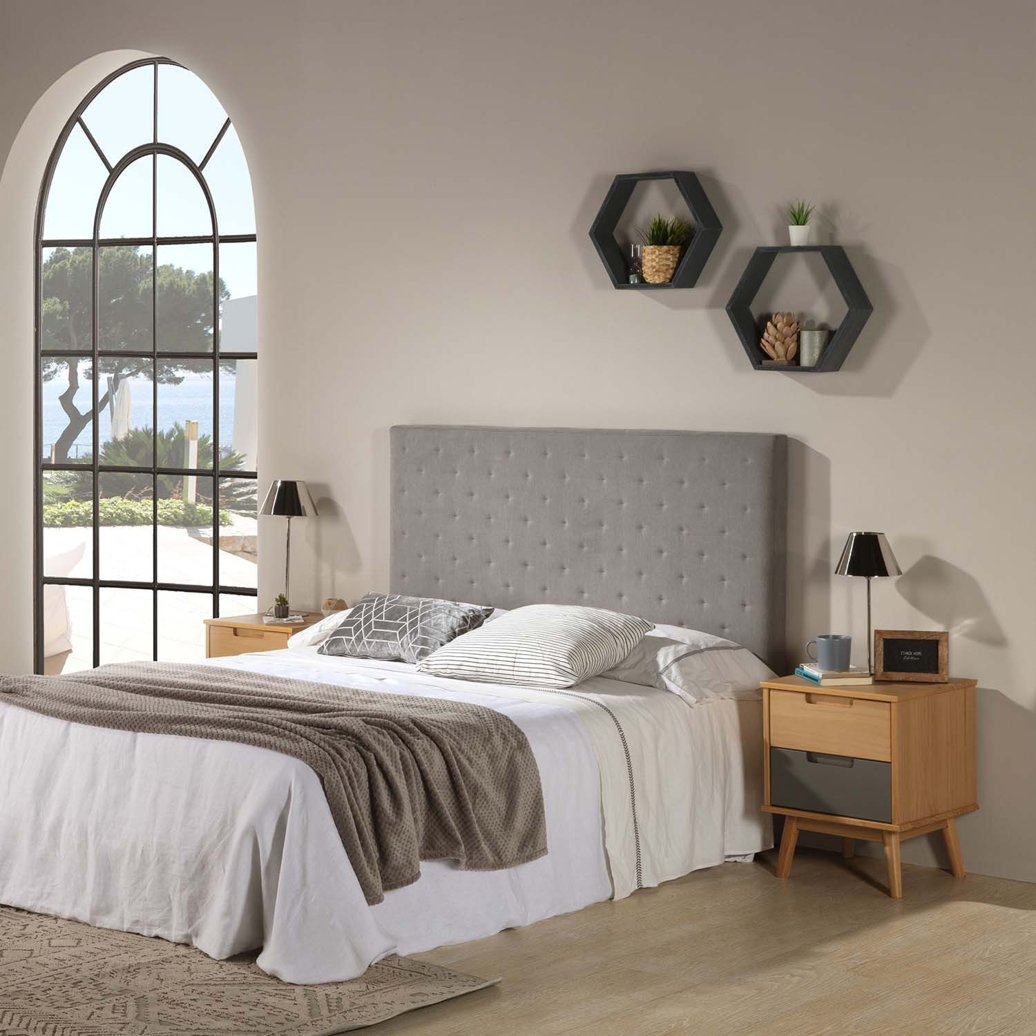 • Tapissée en tissus couleur Gris de grande qualité et toucher agréable. Design classique et élégant qui apportera une touche de distinction à votre chambre.
