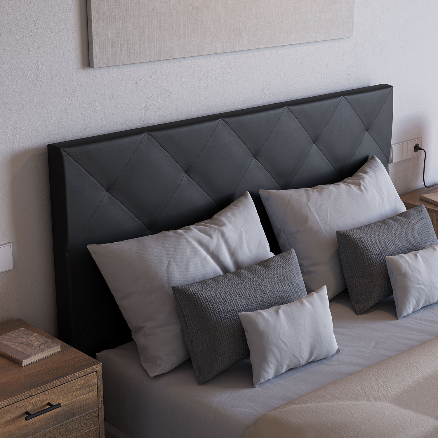 • Structure rigide en contreplaqué qui allège le poids de la tête de lit pour l'ancrer facilement au mur.