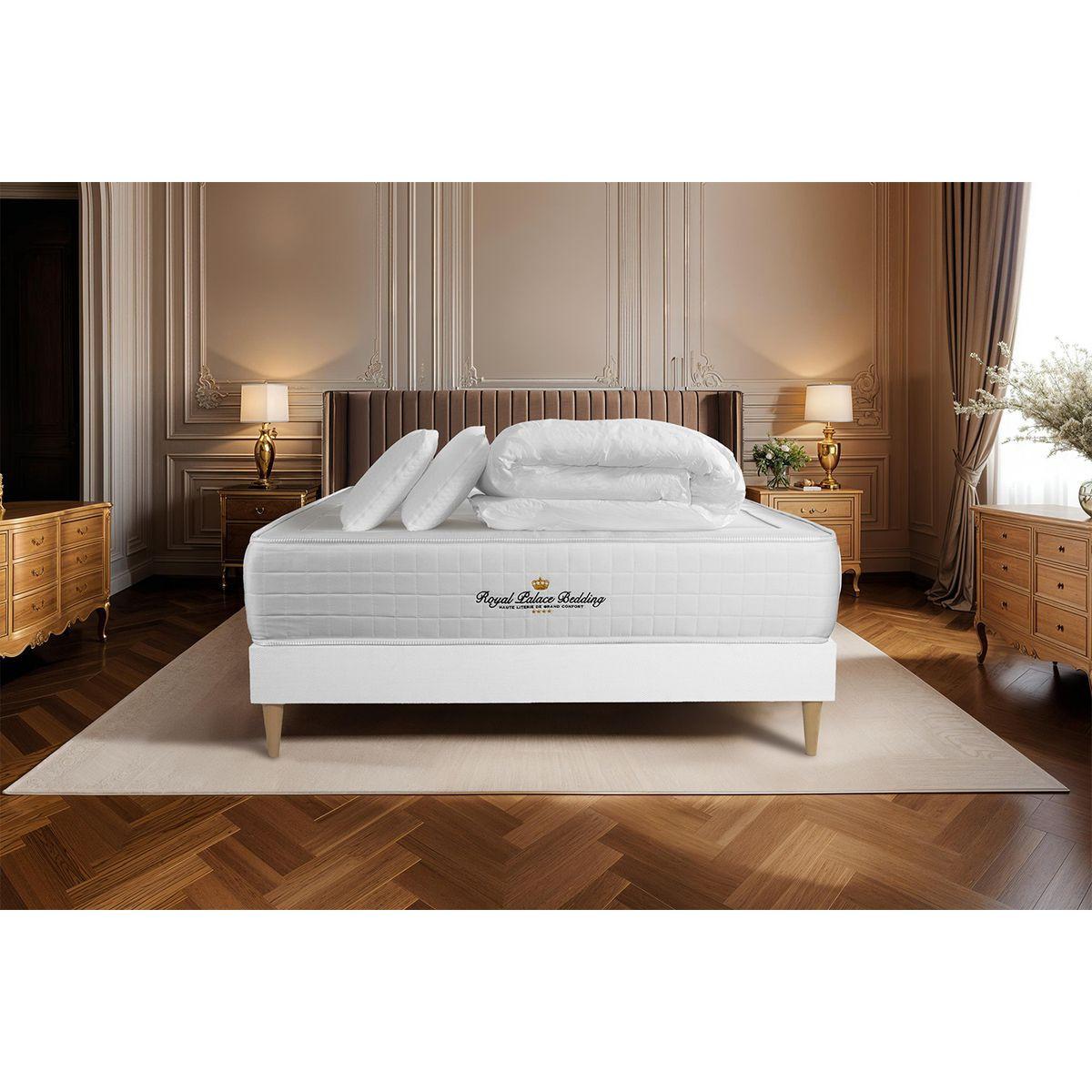 Le Pack literie Windsor de la marque Royal Palace Bedding est constitué d'une âme en ressorts ensachés procurant un soutien très précis point par point. Sa conception unique vous offrira un soutien ferme et un accueil enveloppant. Sa maxi épaisseur vous assure une nuit de bien-être. Son plus ses ressorts ensachés pour une parfaite indépendance de couchage. Il vous est livré avec 1 couette de qualité en pur coton peigné percale avec un tissu plus souple et plus soyeux et de 2 oreillers mémoire de forme Régulateur de température "AIRSYSTEM" .