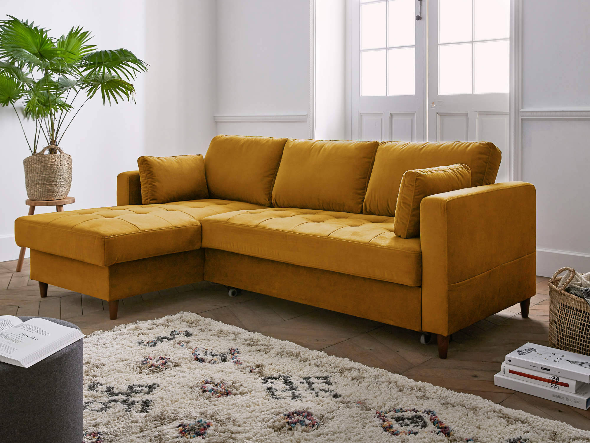 Un canapé d’angle en velours