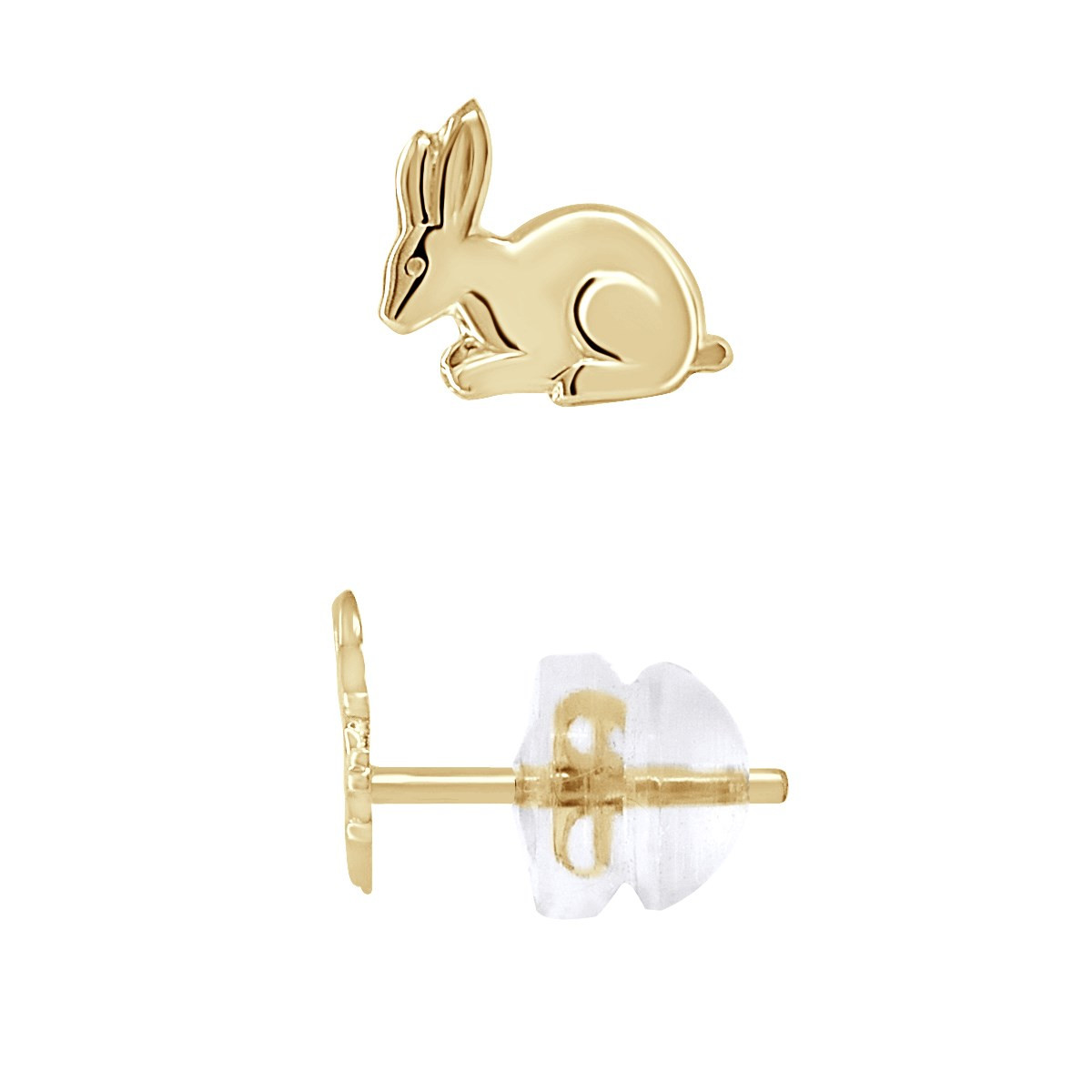 Boucles d'Oreilles Enfant LAPIN Or Jaune - Système Poussettes SILICONOR Anallergiques et imperdables