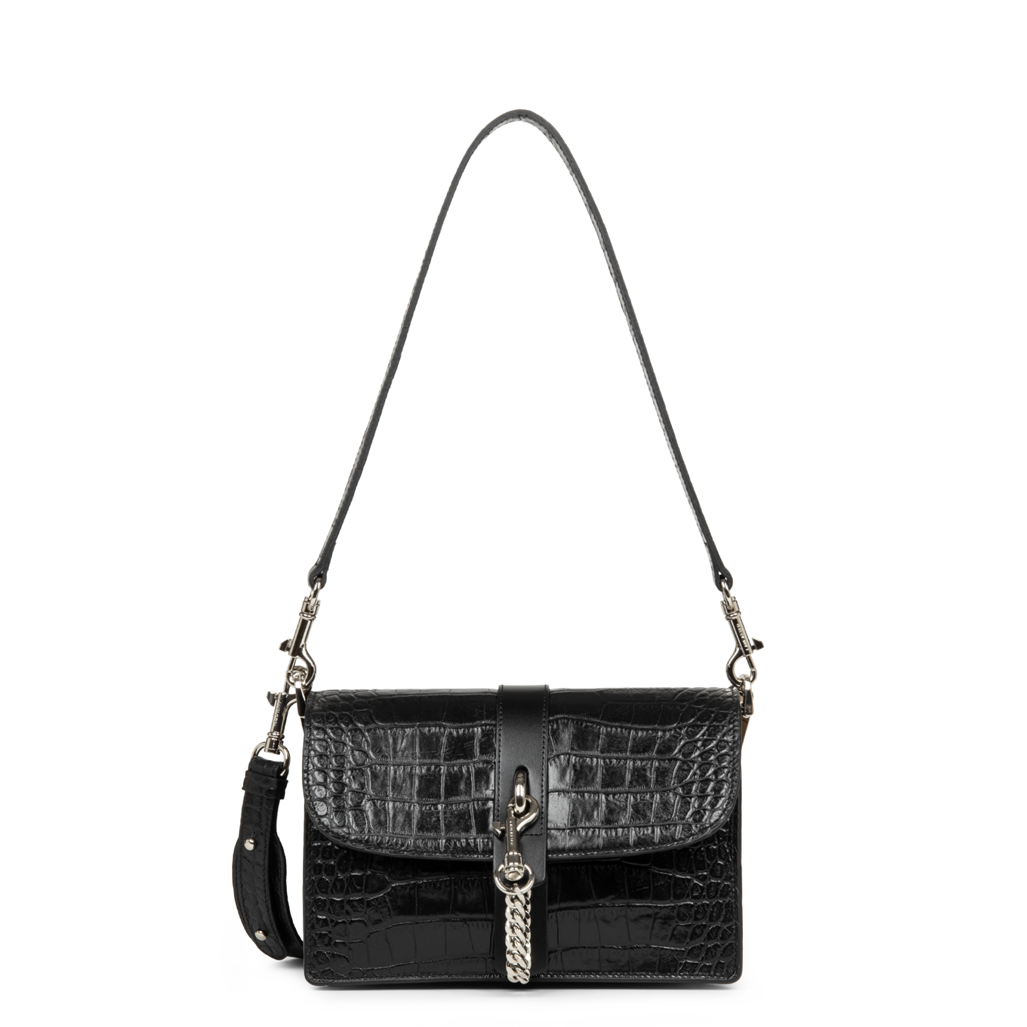 Lancaster - Sac trotteur - Jodie - Noir - Argent - Cuir de vachette grainé