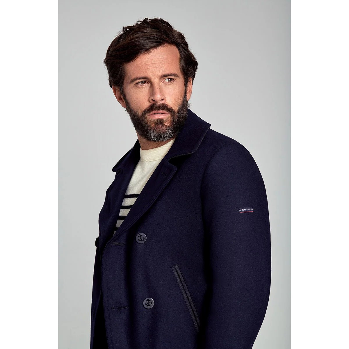 Très tendance et élégant, ce caban bicolore charmera toutes vos activités en plein air. Caban bicolore pour homme en drap de laine Double boutonnage Manches longues Deux poches extérieures et intérieures Longueur pour une taille 44 : 76.5 cm Matière : 100% Laine
