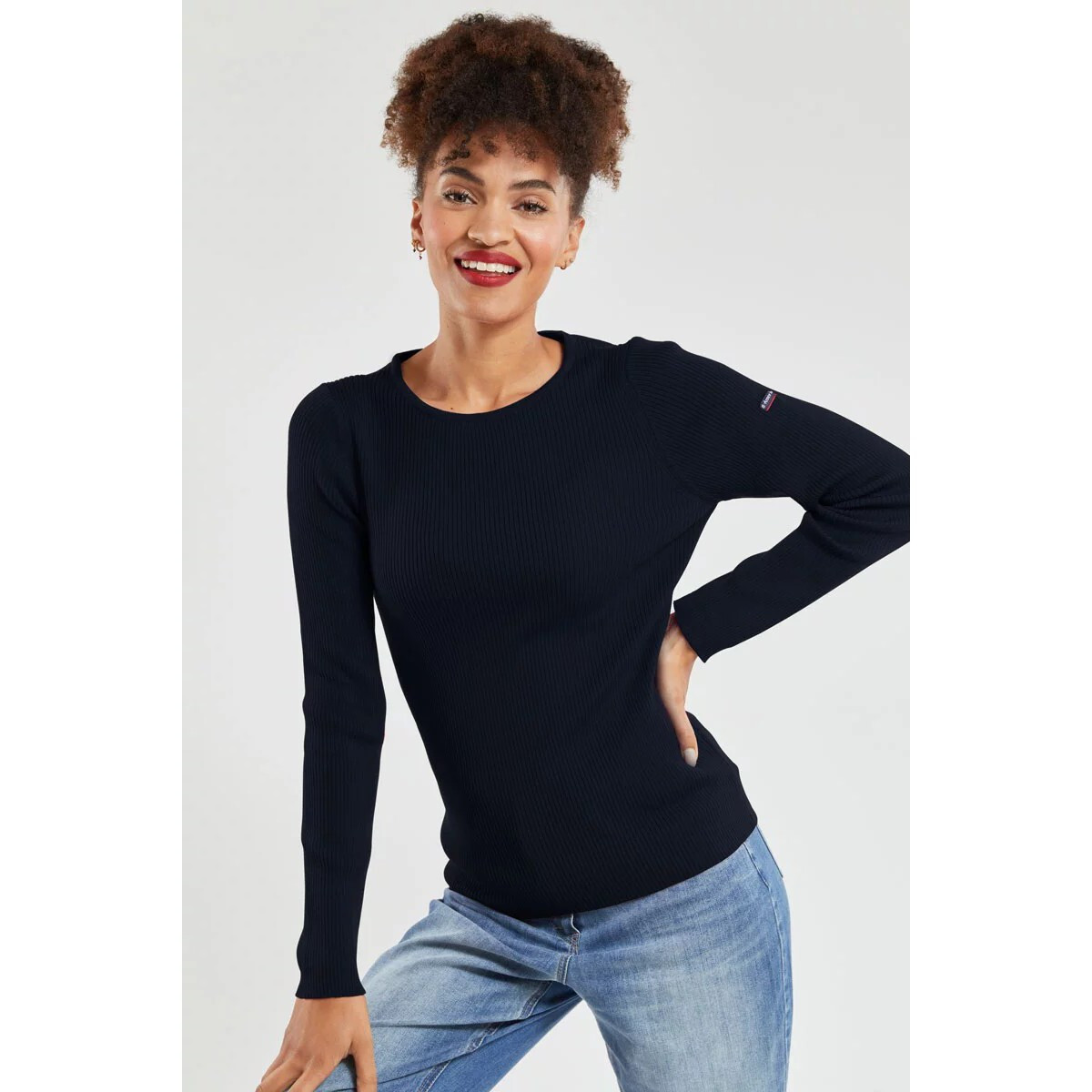 Confectionné dans une pure laine, ce pull vous apportera chaleur et douceur tout au long de l'hiver. Pull chaussette pour femme Col rond Coupe près du corps Côte 2x2 Laine Mérinos Hauteur totale pour une taille 1 : 61 cm Matière : 100% Laine
