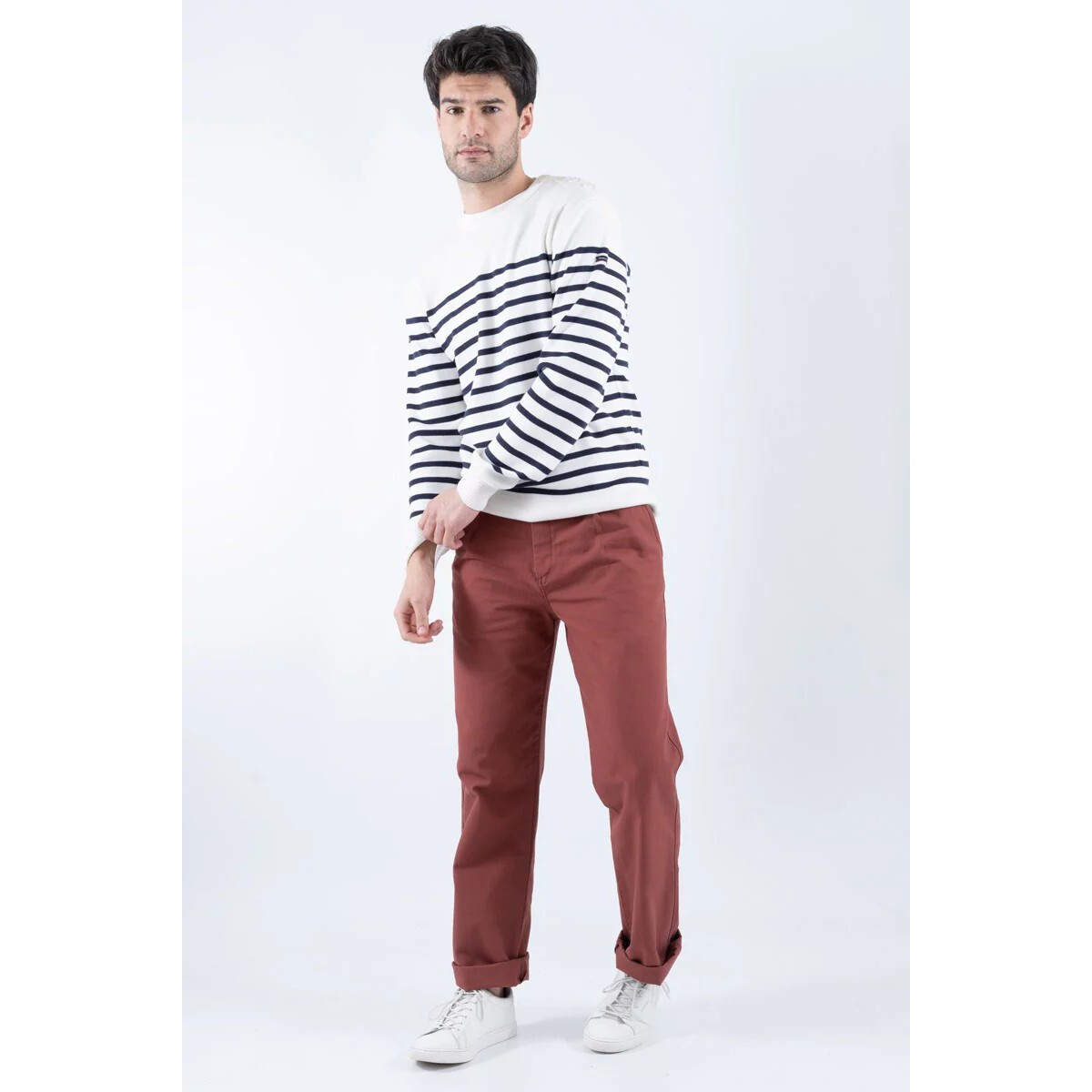 Un modèle original et confortable grâce à sa taille élastiquée, à porter en toutes occasions. Pantalon uni pour homme Coupe regular Taille élastiquée 2 poches italiennes sur le devant 1 poche dos plaquée avec rabat boutonné Toile canvas Matière : 100% Coton