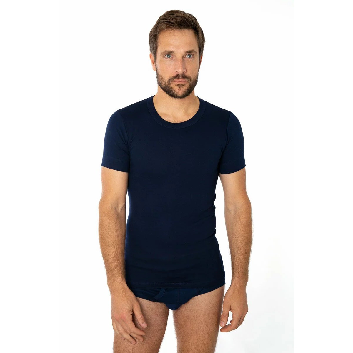 Basique, basique quand tu nous tiens. T-shirt pour homme Col ras du cou Coupe près du corps Coton peigné Maille en interlock Matière : 100% coton peigné