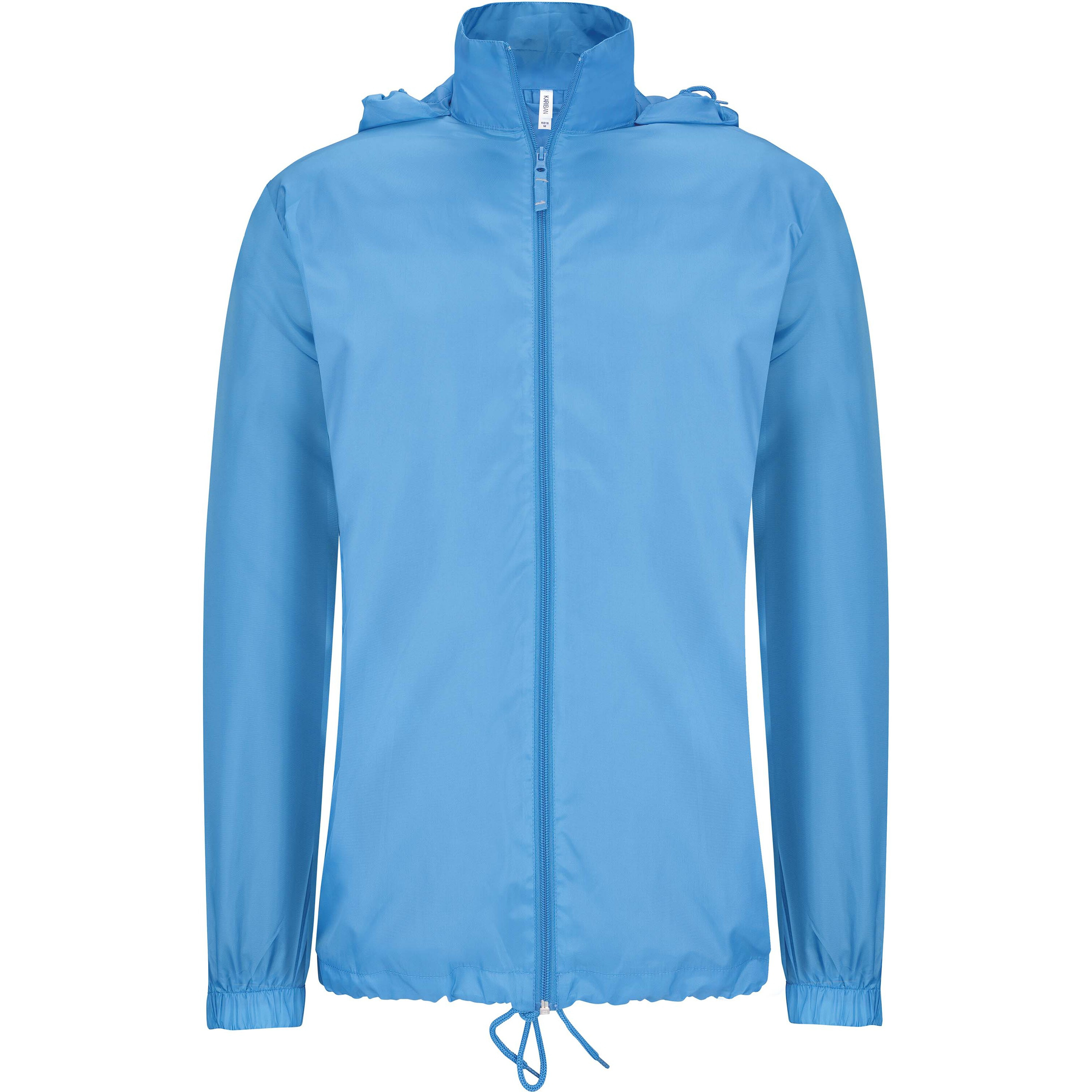100% polyester. Capuche dans le col avec patte auto-agrippante. 2 poches zippées devant. Cordon de serrage au bas. Bas de manches élastiqués. Repliable dans sa poche sur la base du système K-WAY®. Fermeture zippée ton sur ton.