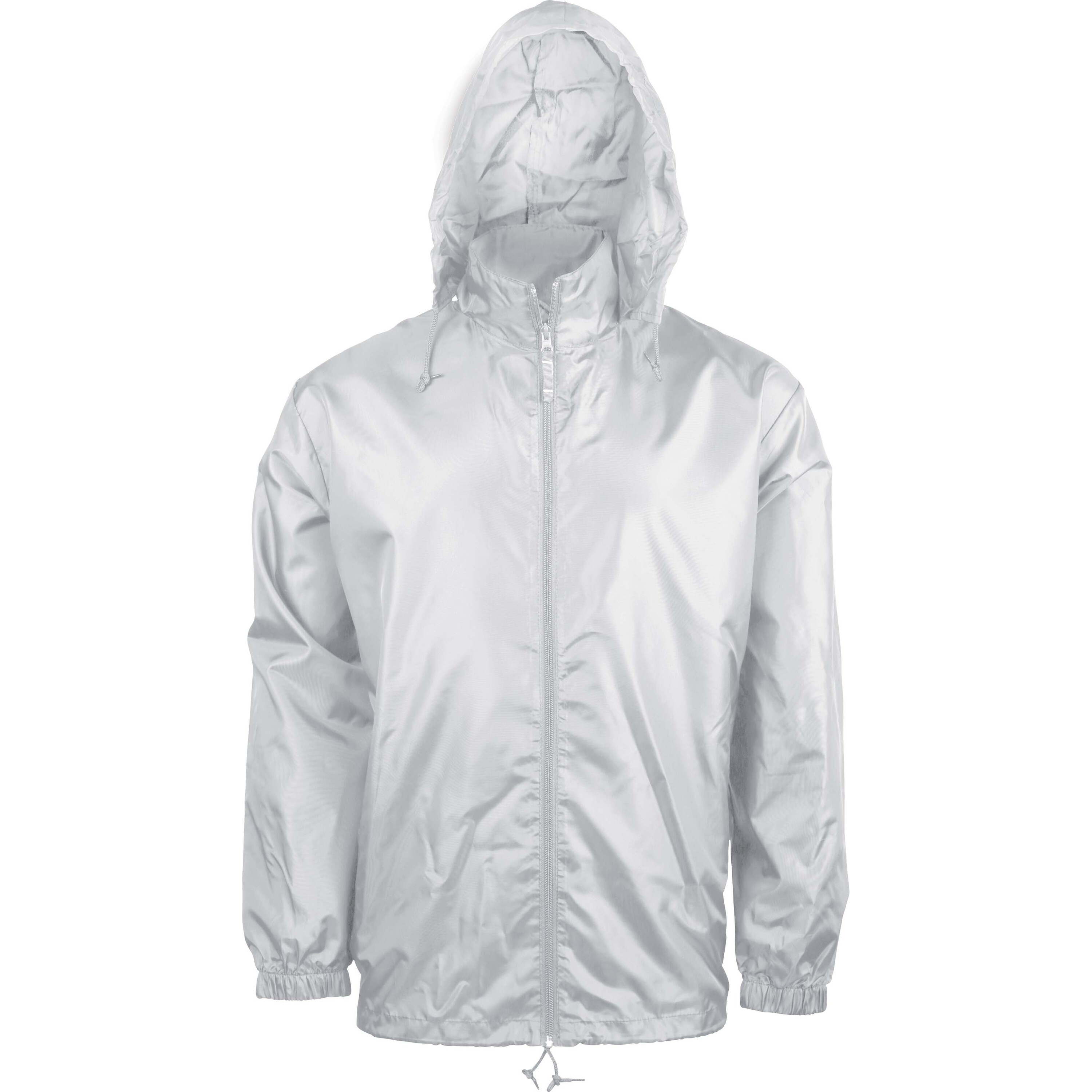 100% polyester. Fermeture zippée ton sur ton. Capuche dans le col avec patte auto-agrippante. 2 poches zippées devant. Bas de manches élastiqué. Repliable dans sa poche sur la base du système K-Way®.