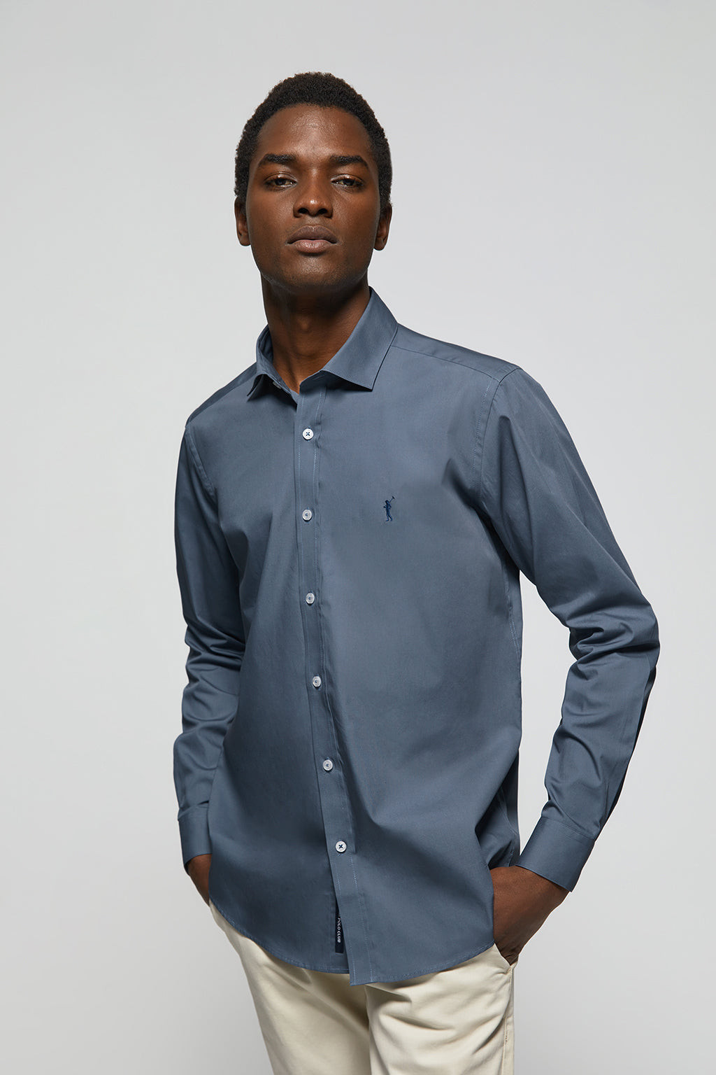 Chemise Slim en popeline bleu denim avec logo Rigby Go