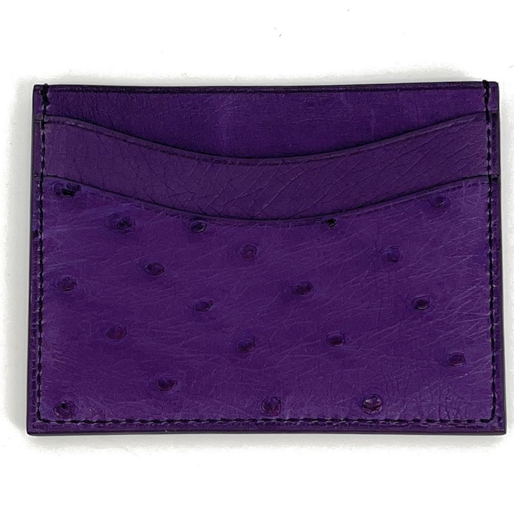 Porte-cartes en cuir d'autruche français OMB édition Haute-couture Violet